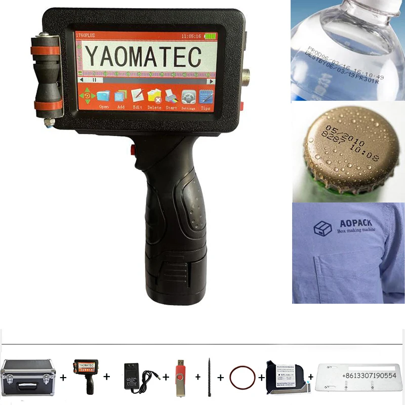 YAOMATEC 25 языков, переменный 12,7 мм онлайн QR штрих-код, номер логотипа, этикетка на дату истечения срока годности, ручной струйный термопринтер