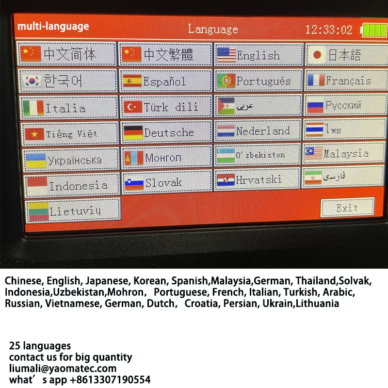 Китайский, английский, японский, корейский, испанский, Малайзия, немецкий, Таиланд, солвак, Индонезия, Узбекистан, мохрон