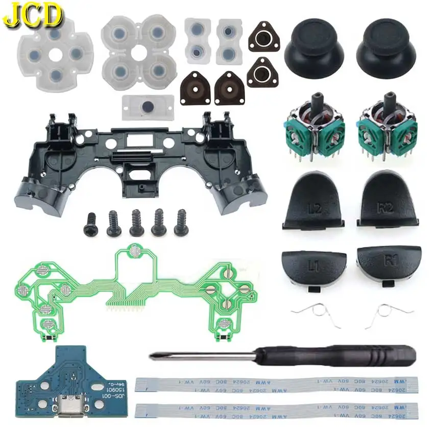 JCD для PS4 R1 L1 R2 L2 пусковые кнопки 3D аналоговые джойстики стики колпачок проводящая подкладка зарядная плата гибкий кабель рамка