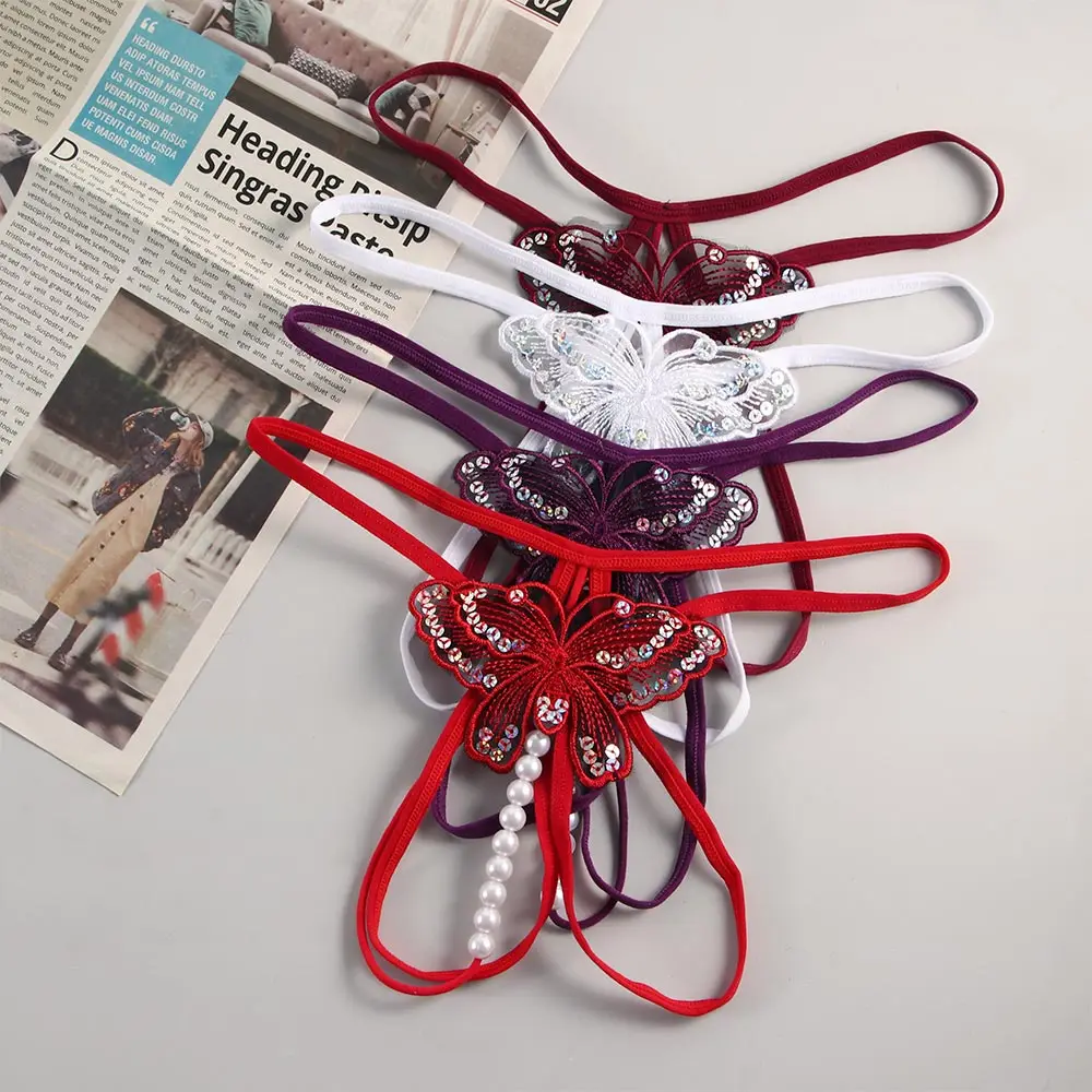 1 шт., стринги с вышивкой и бабочкой, трусики с жемчужинами