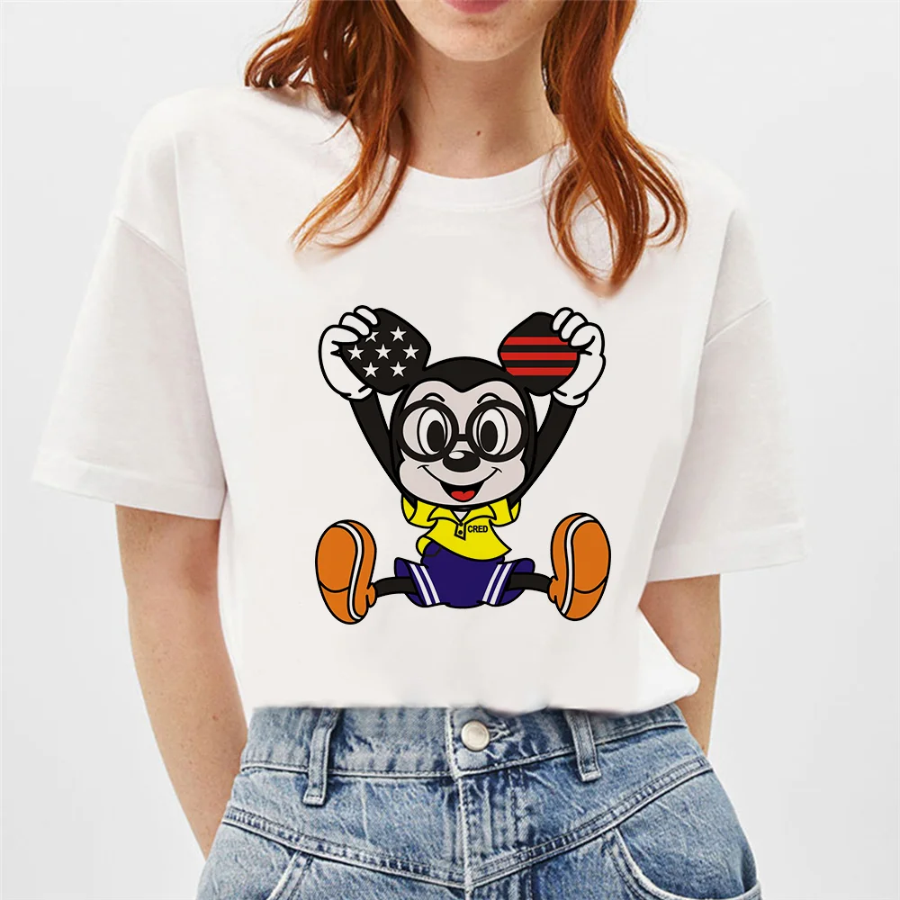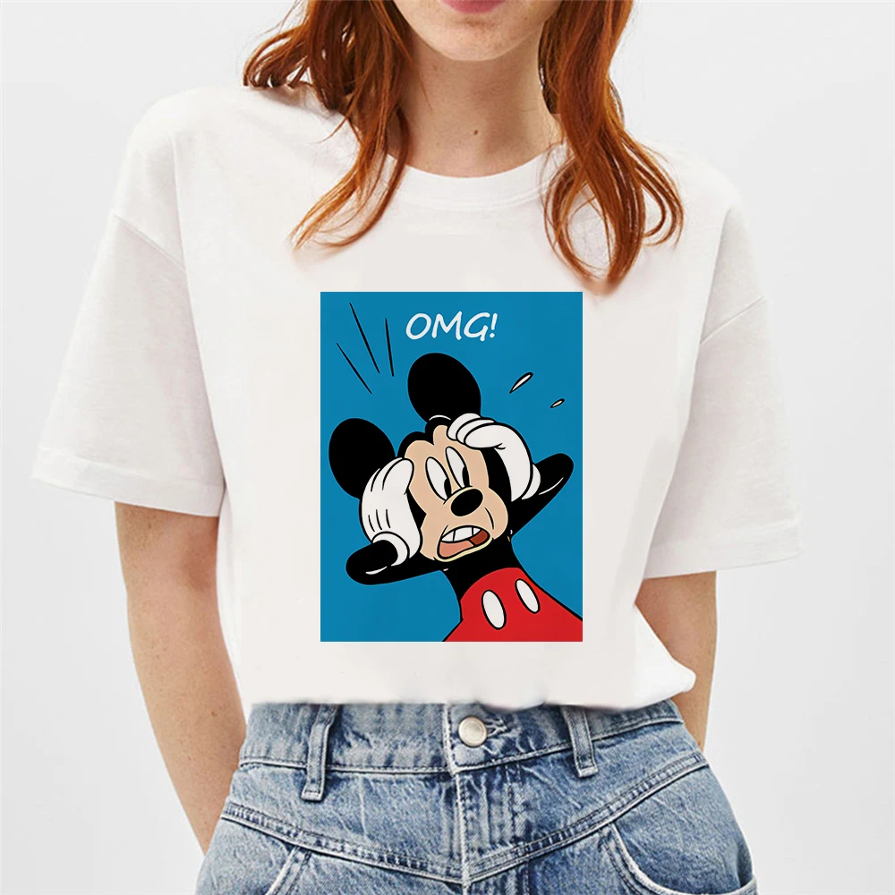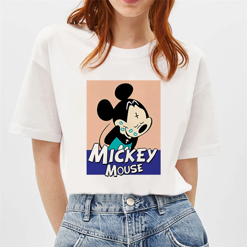 Футболка женская летняя с мультяшным принтом Микки Маус, смешная ру...