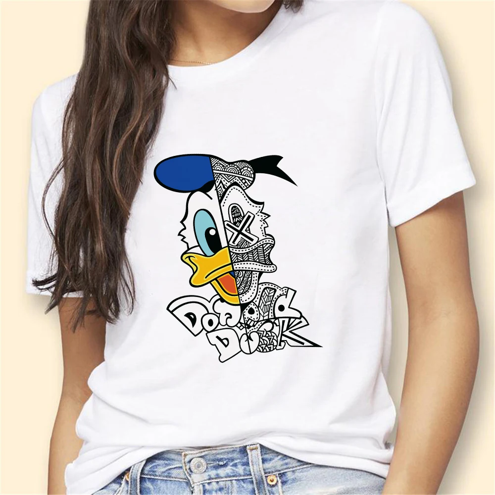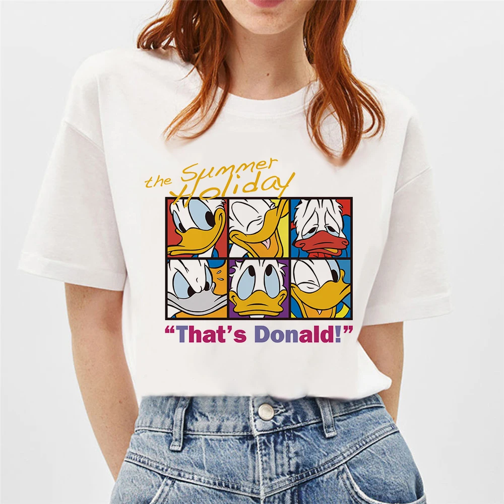 Женские футболки с мультяшным принтом Дональда Дака, белые, летние,...