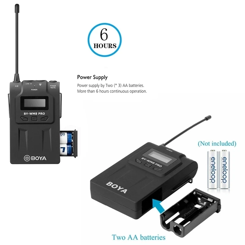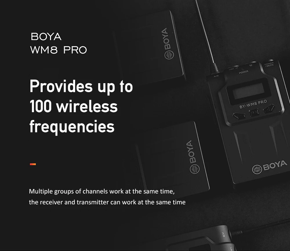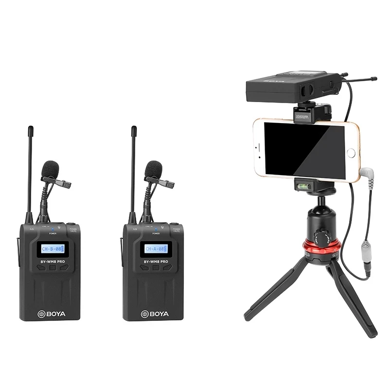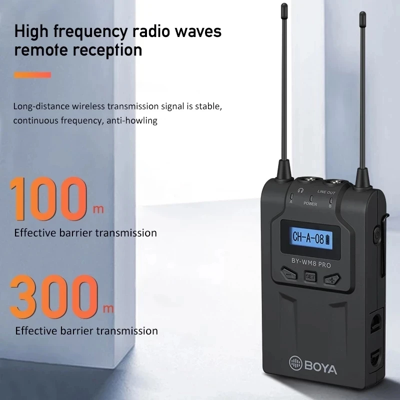 Pro-K2 BOYA BY-WM8 представляет собой обновленную двухканальную беспроводную микрофонную систему UHF для захвата аудио с двумя предметами, имеет простой в считывании ЖК-дисплей, широкий диапазон переключения частот RF, PLL-синтезированная Настройка и цифровая companying схема.