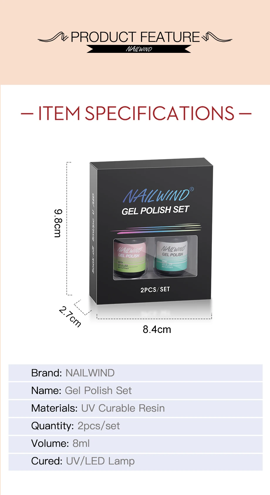 NAILWIND 8 мл Гель-лак чистые цвета лак для ногтей необходимая УФ-лампа 2 шт отмачиваемый Полупостоянный гель предназначен для маникюра красоты