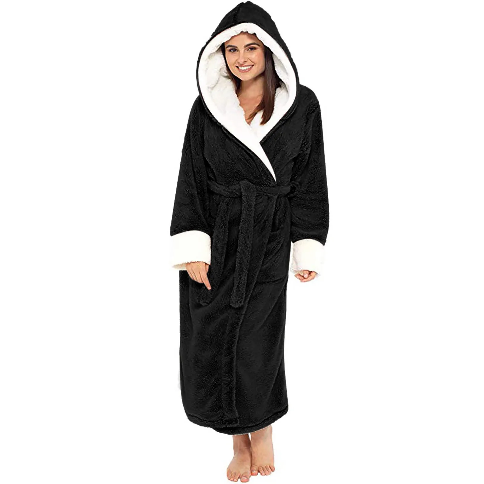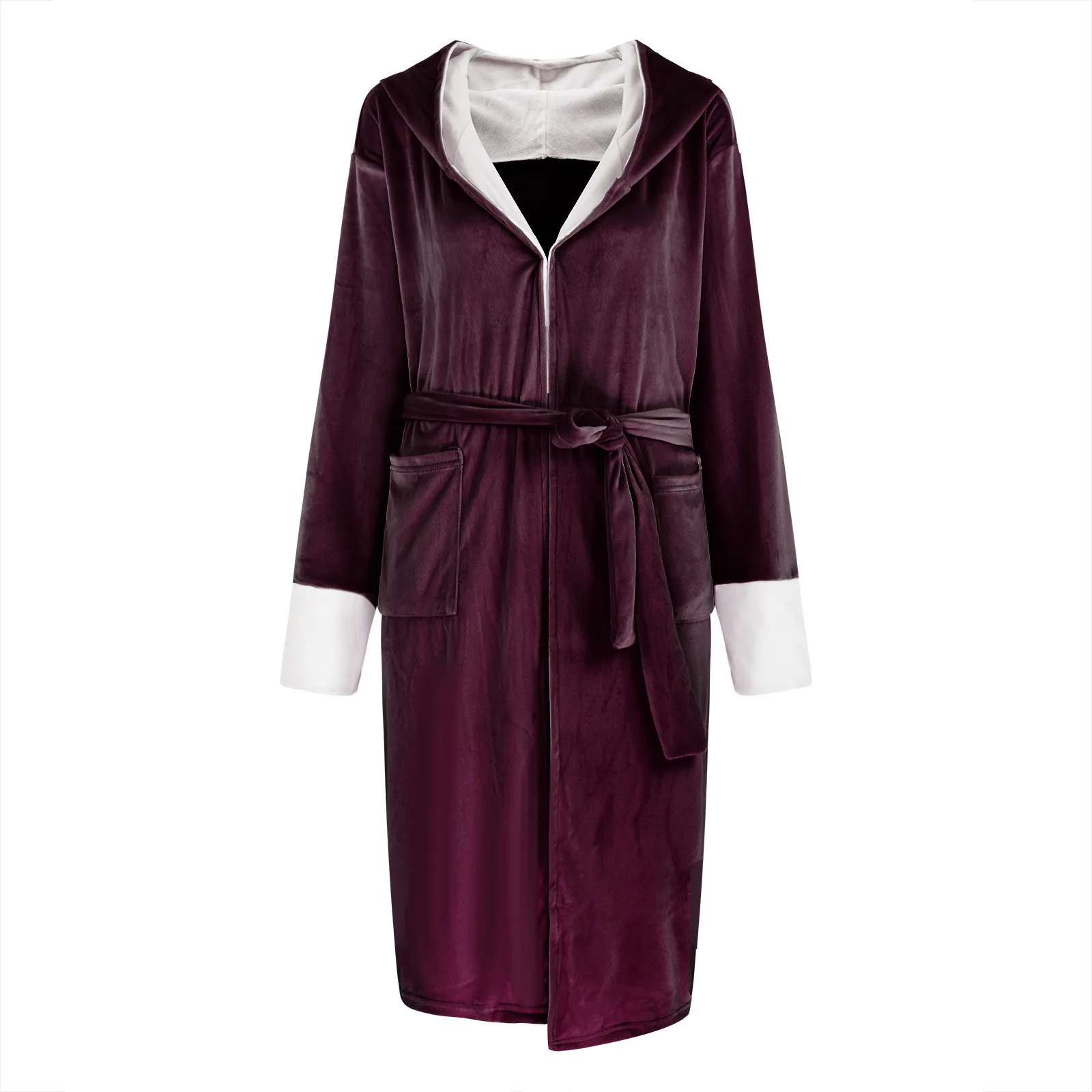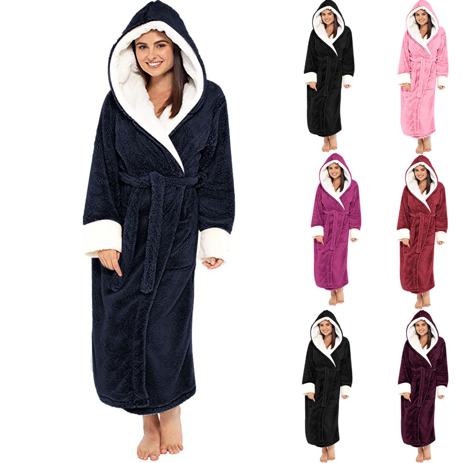 Халат Женский Повседневный с капюшоном, однотонный мягкий Халат с капюшоном, длинная ночная рубашка, Свободная Домашняя одежда, осень-зима 2021
