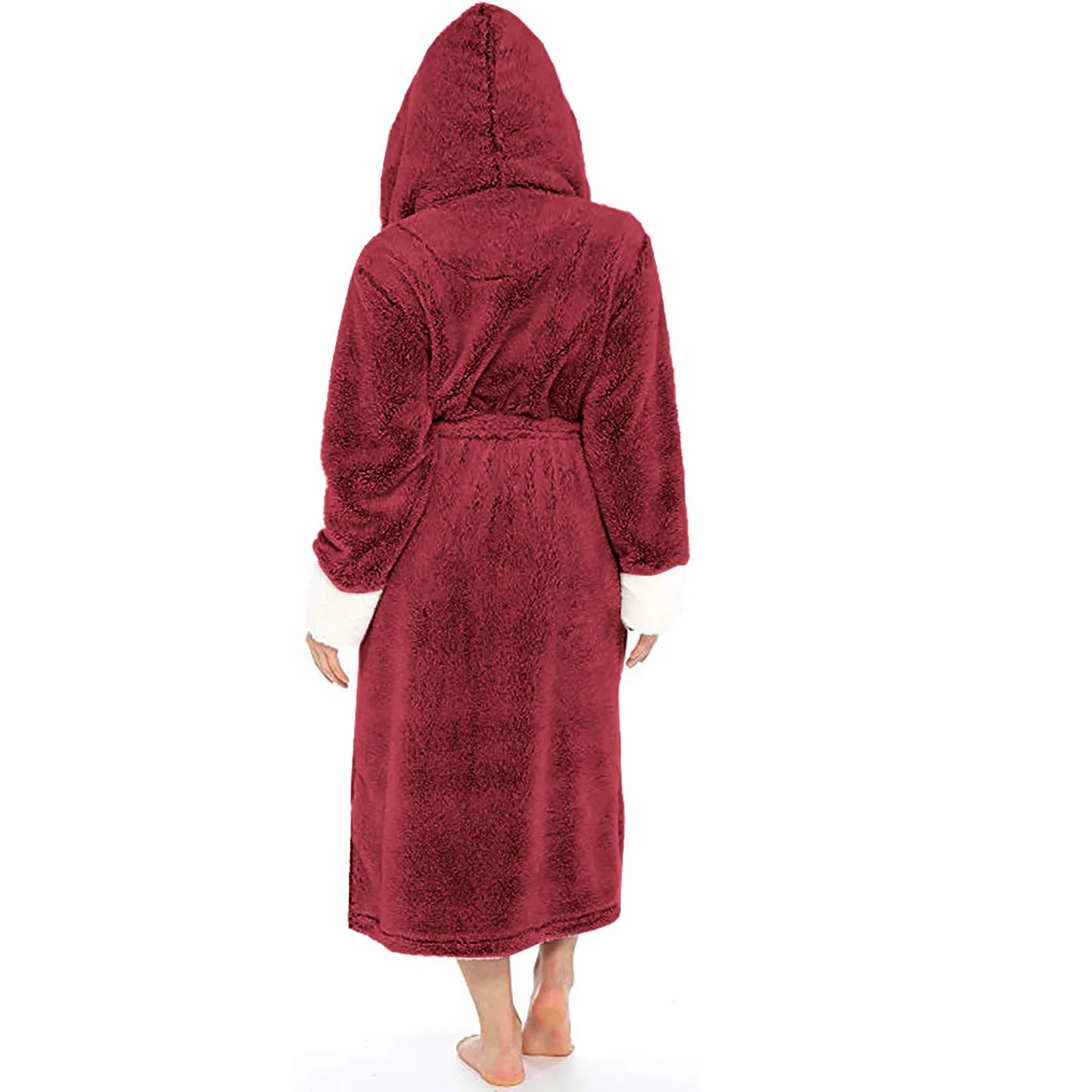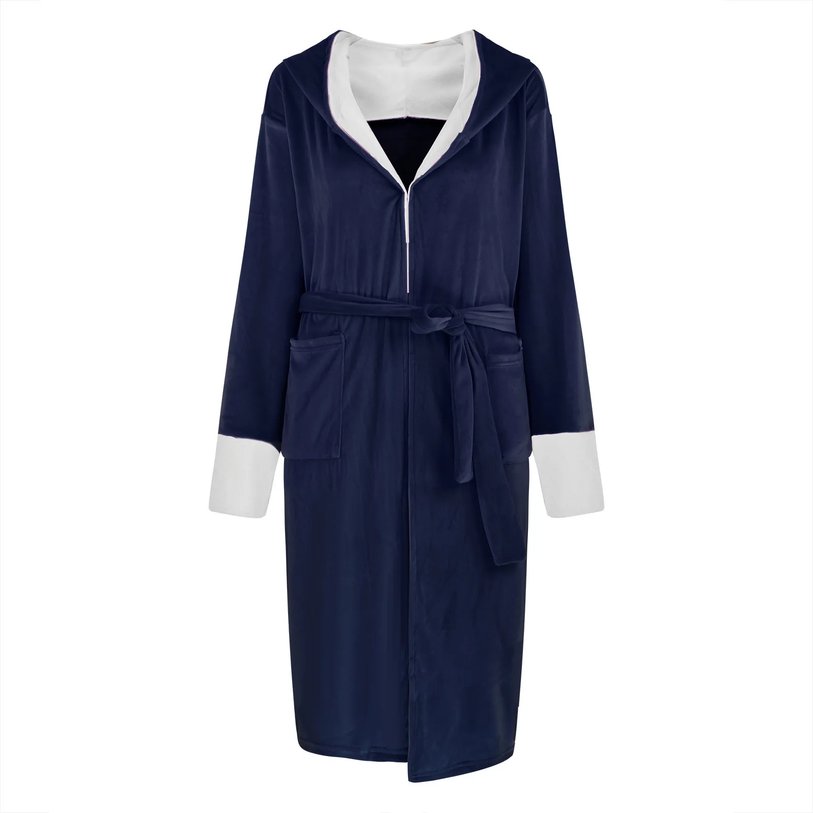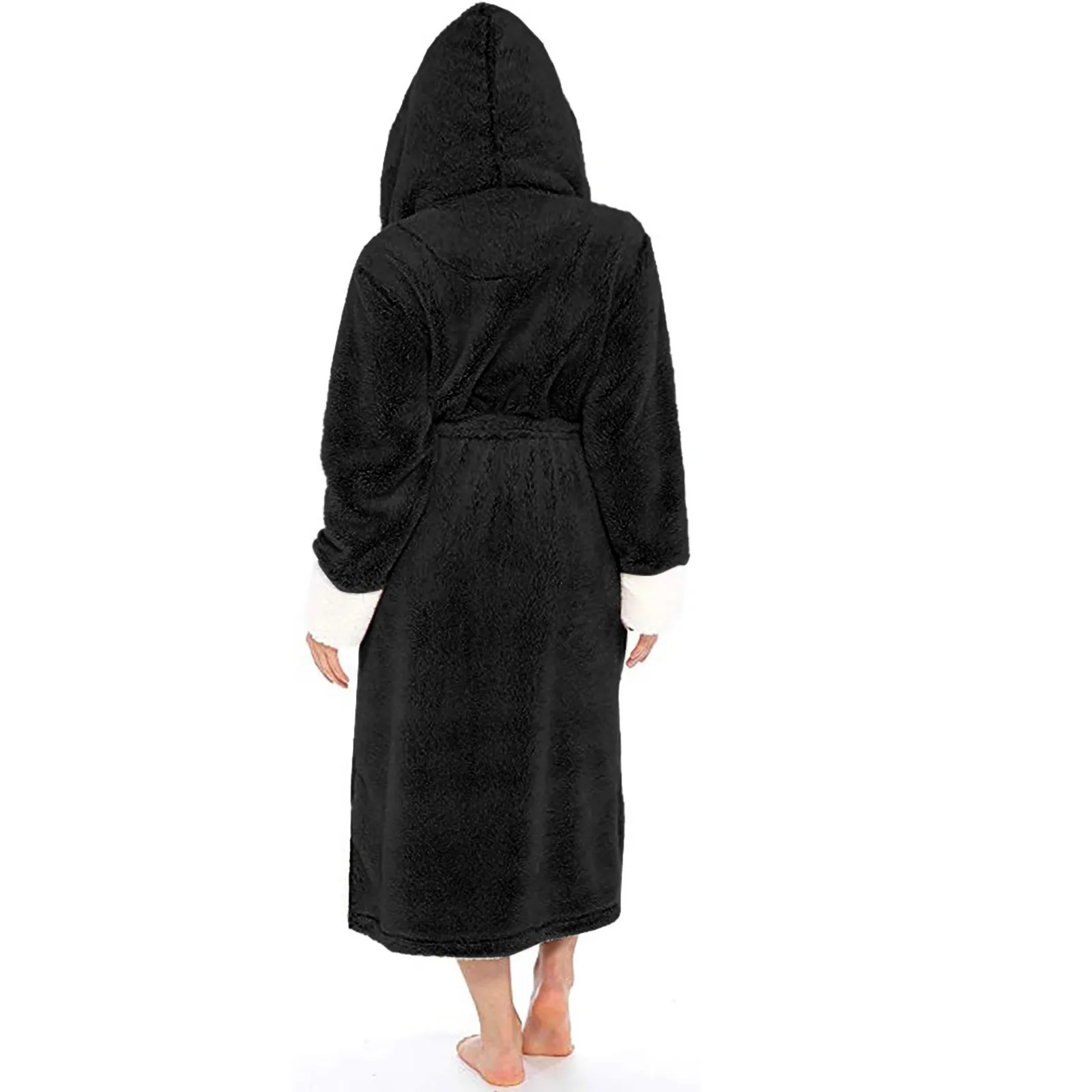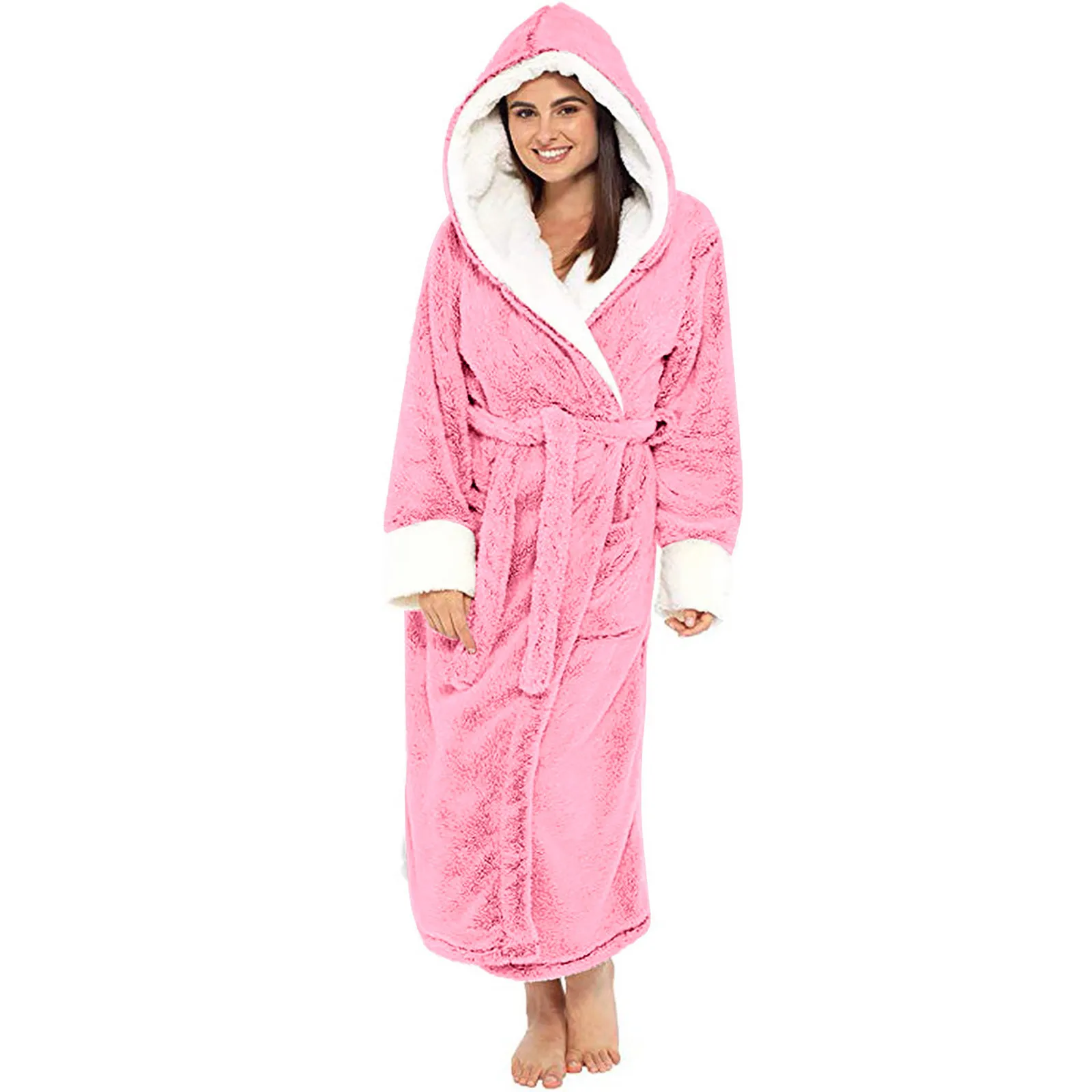 Халат Женский Повседневный с капюшоном, однотонный мягкий Халат с капюшоном, длинная ночная рубашка, Свободная Домашняя одежда, осень-зима 2021