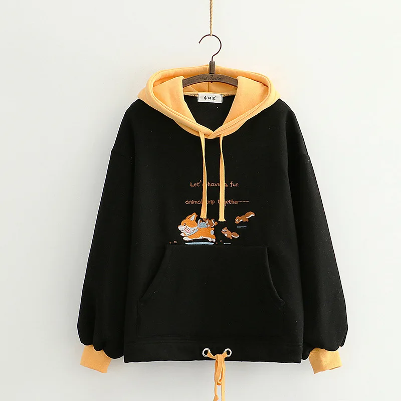 Женский свитшот корейский колледж с буквами животных с вышивкой плюшевая Толстовка Зимняя Толстовка свитшоты винтажные Bts розовые толстовки