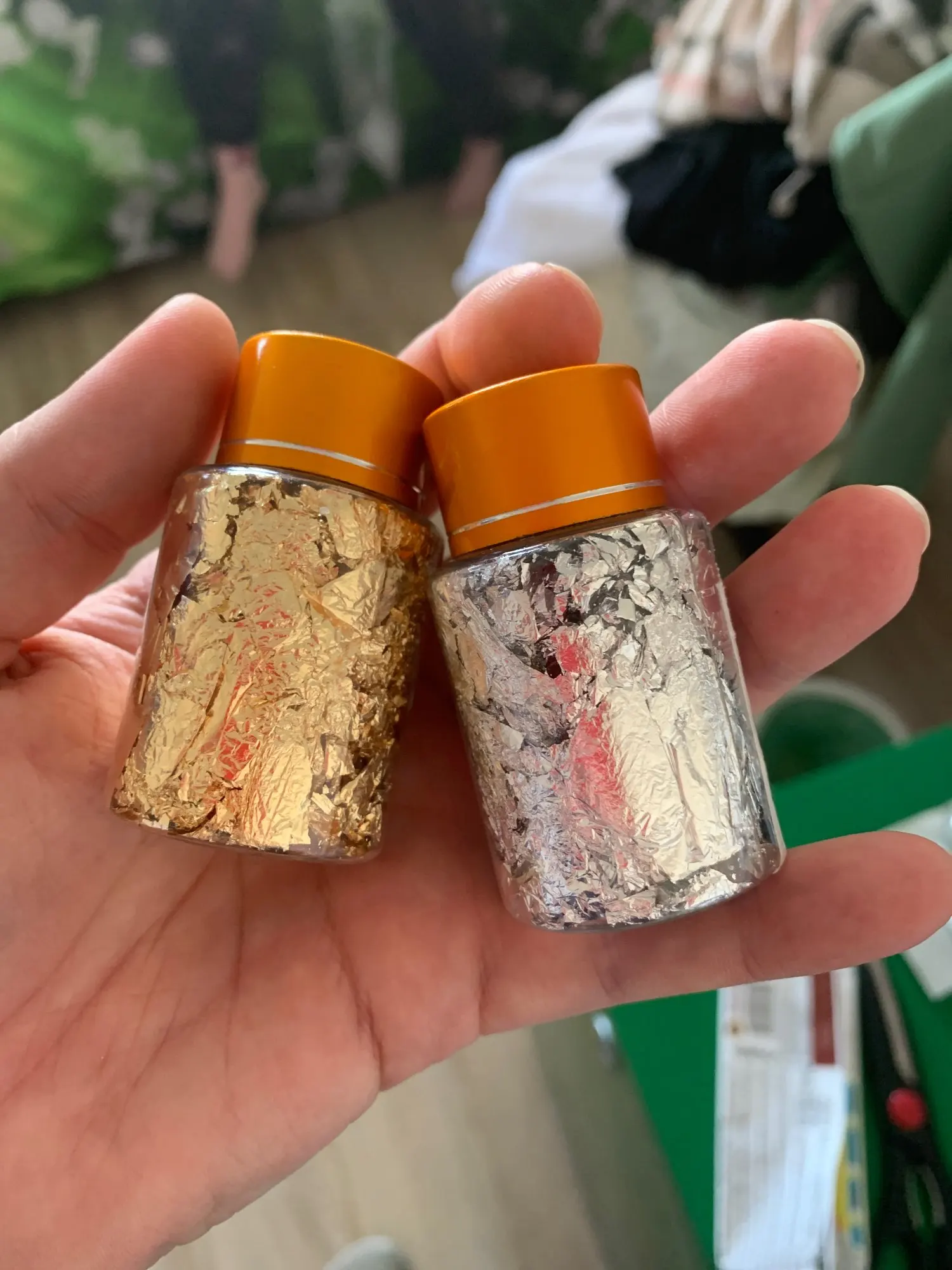 Особенности:Золотые фольги не легко выцветают и окисляются, они могут создавать удивительные блестящие эффекты текстуры и сделать ваше ремесло особенным.Каждая посылка из фольги оснащена прочным пластиковым ящиком для хранения, который аккуратно хранит детали после каждого использования.Золотые хлопья идеально подходят для ювелирных изделий из смолы, акриловой живописи, нейл-арта, производства вискозы, фоторамок и других крафт-пасты.Советы-эти металлические фольги не являются съедобными и не могут использоваться для украшения тортов, мороженого, выпечки, напитков или продуктов питания.Описание:Новинка и высокое качествоТип: полимерная форма для наполненияМатериал: медьЦвет: золотой, серебряный, розовое золотоЕмкость: 5g/10 гРазмеры: 5,9*3,1/4,3*4 смПосылка включает в себя: 1 бутылка золотого листаПримечание:1. Допускается погрешность в 2-3% из-за ручного измерения.Перед размещением заказа, пожалуйста, внимательно ознакомитесь со всеми условиями.2. Цвета могут отличаться, так как на дисплее разница, пожалуйста, поймите.