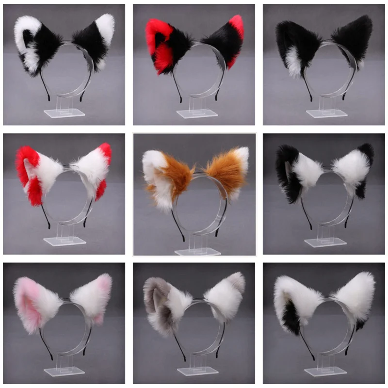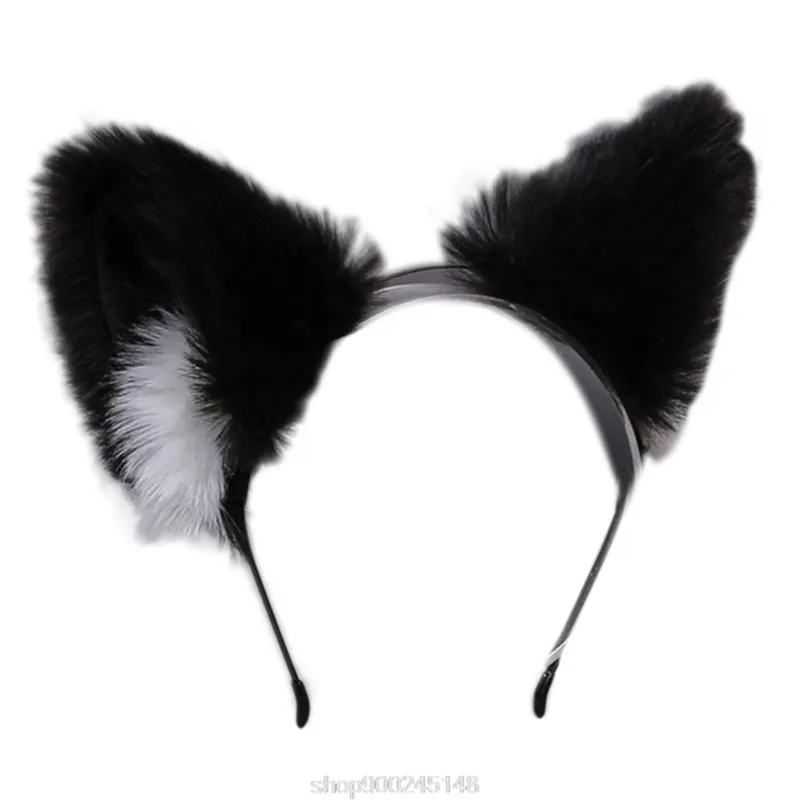 Милые пушистые животные волчьи уши Реалистичная повязка на голову головной убор Neko кошачьи лисы уши косплей мягкая плюшевая Лолита аксессуары для волос Аниме Реквизит