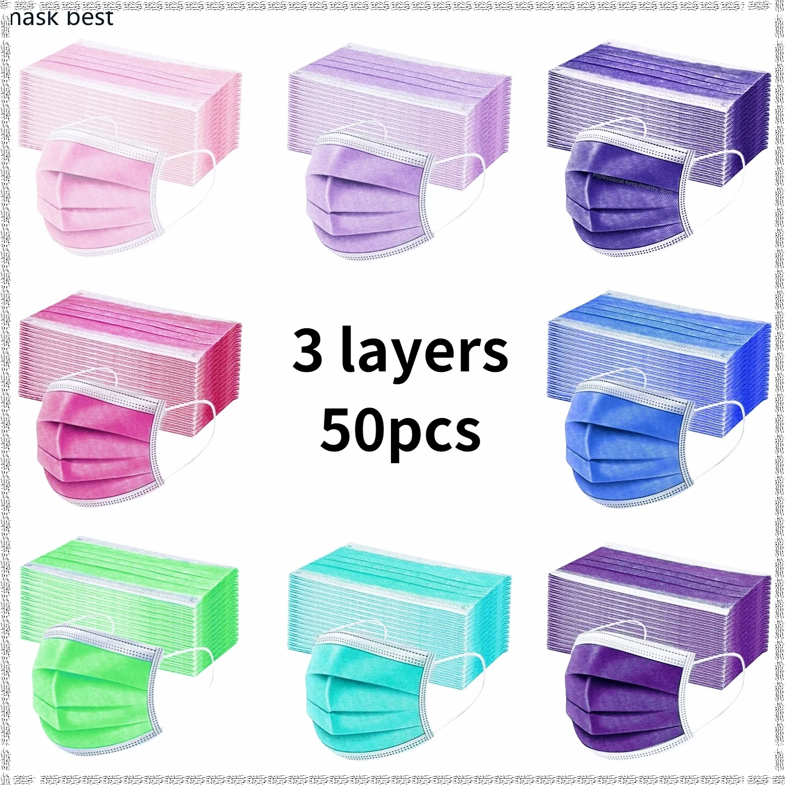Одноразовая Нетканая 3-слойная маска с фильтром для взрослых, 10-50 шт., фиолетовая, розовая, зеленая маска для лица, дышащая фотомаска для взрослых