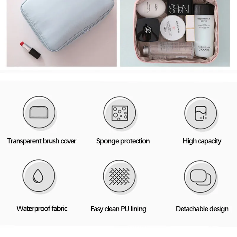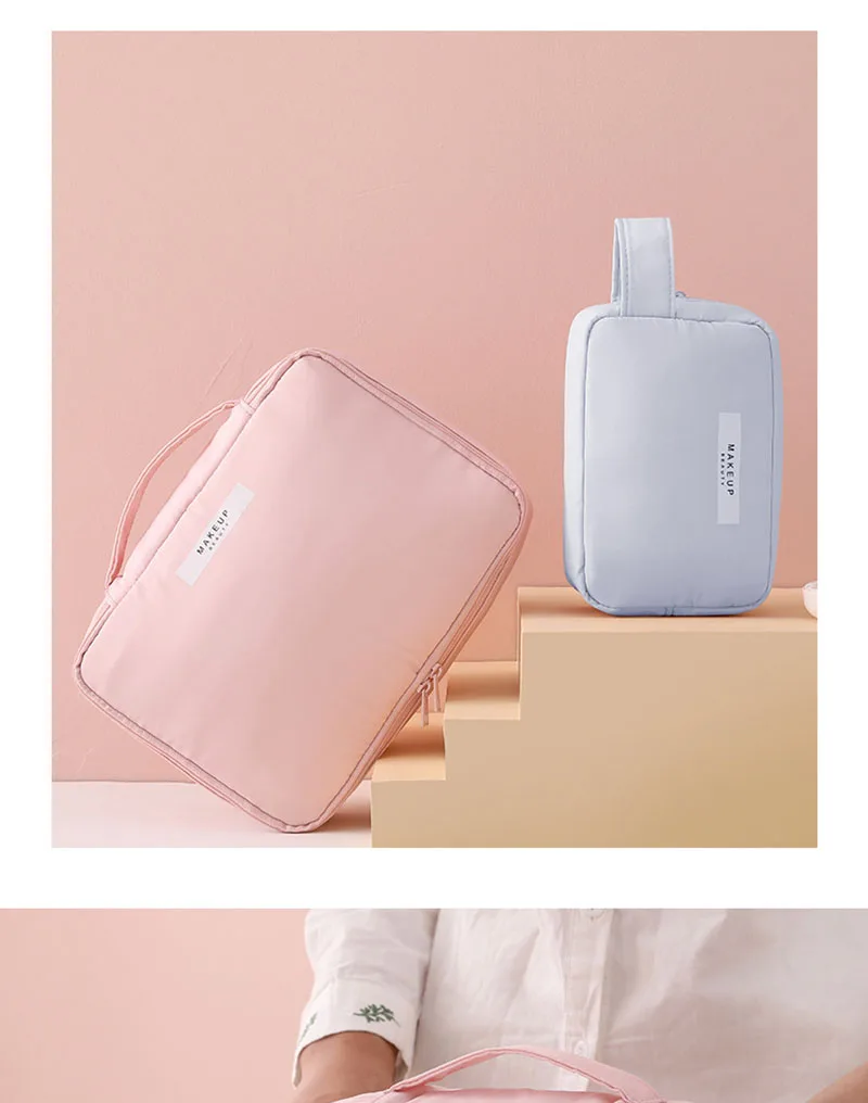 Наименование товара: водонепроницаемая косметичка Материал: нейлон Цвет: серый, зеленый, синий, розовый Размер: 23x16,5x8 см 16.3x11x7cm Подходящая сцена: Настенная Ванная комната Место хранения: туалетные принадлежности, косметика