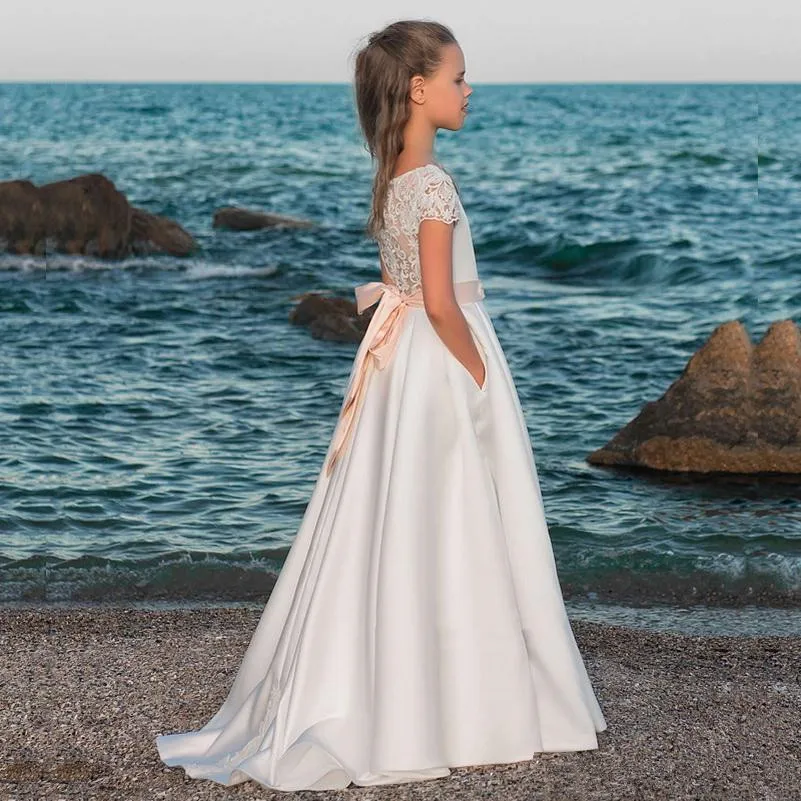 Модные платья с цветочным рисунком для девочек, очаровательные атласные платья до пола с рукавом фонарик для девочек, платья для первого причастия