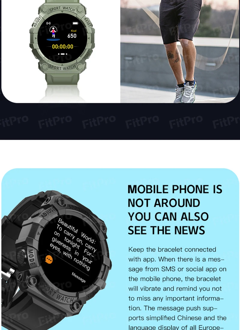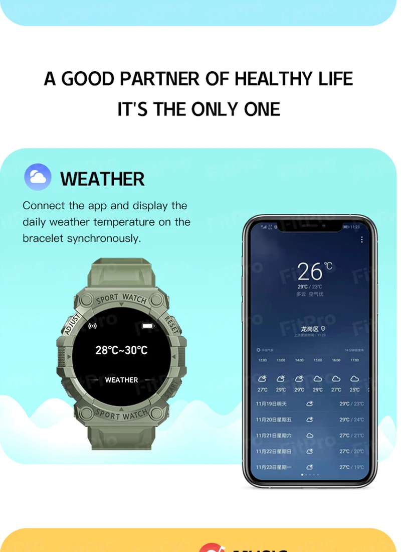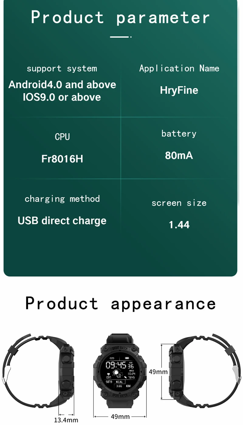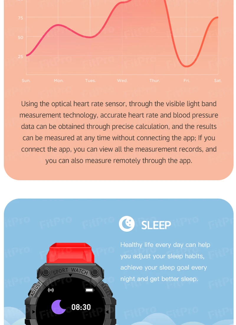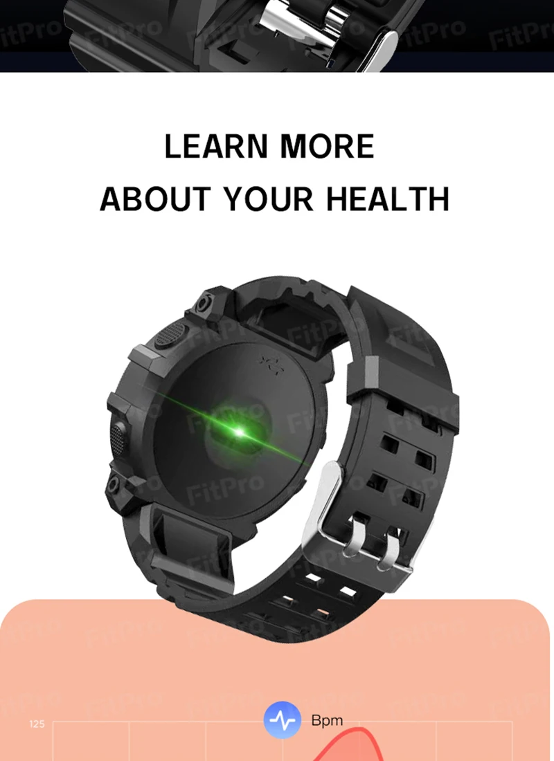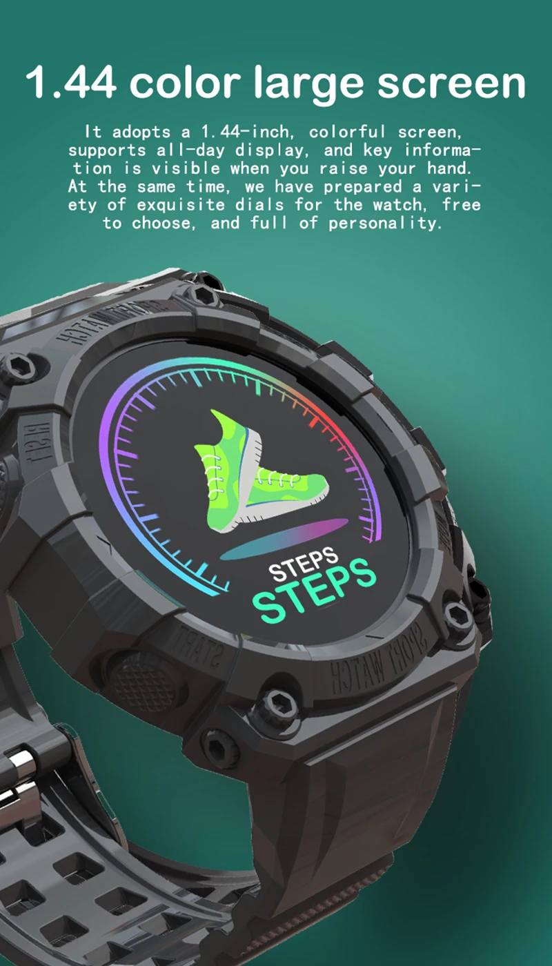 Мужские Смарт-часы с измерением пульса и шагов, 1,44 дюйма