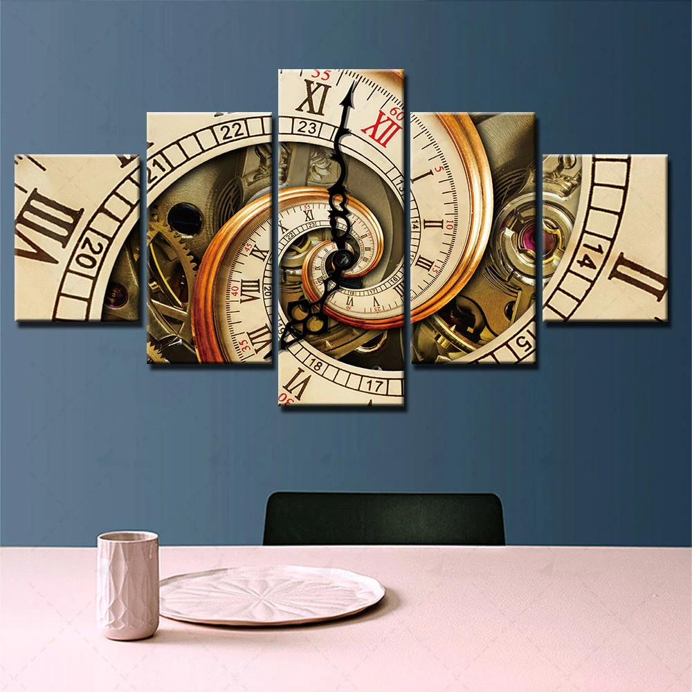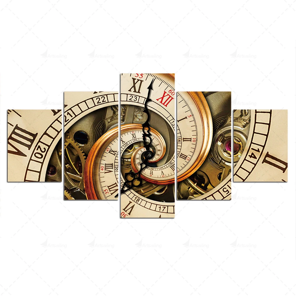 Модульные картины Hd, часы с фотографиями картин, украшение для дома, 5 панелей, холст, современный плакат, настенное произведение искусства для гостиной