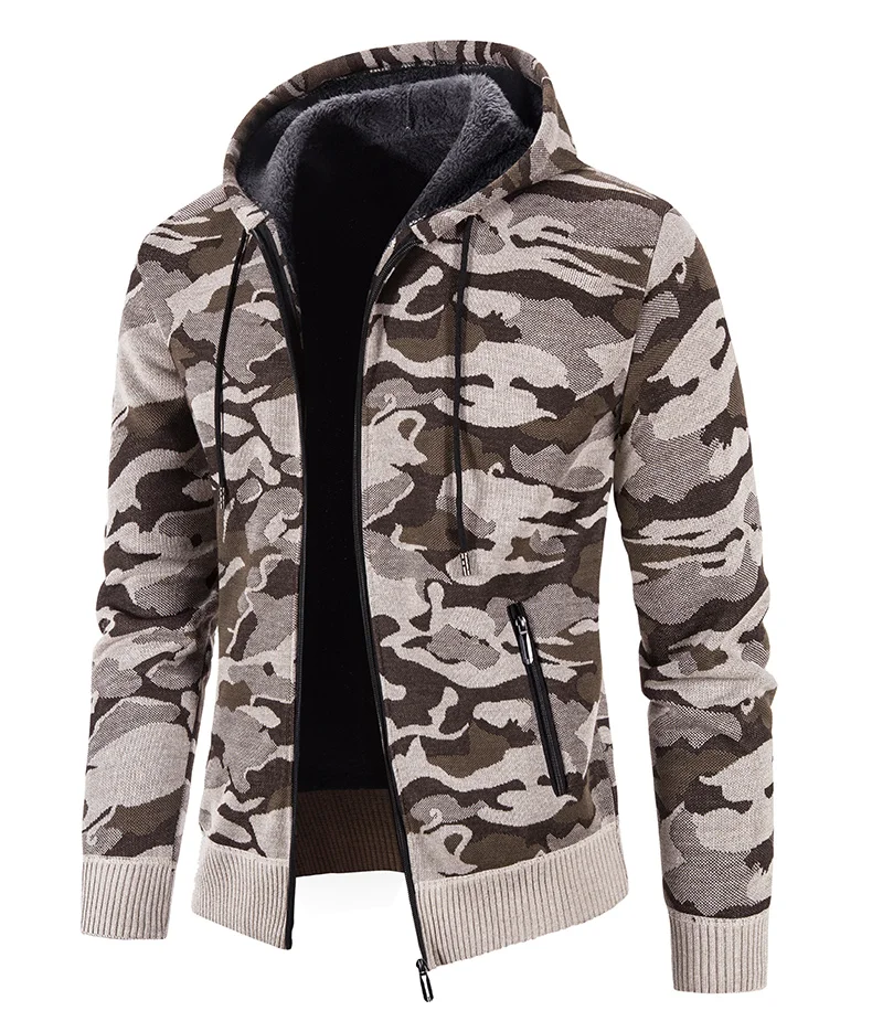 Свитер Мужская куртка с капюшоном, плотный теплый Камуфляжный кардиган, свитера, новые мужские зимние повседневные кардиганы, облегающие толстовки 3XL