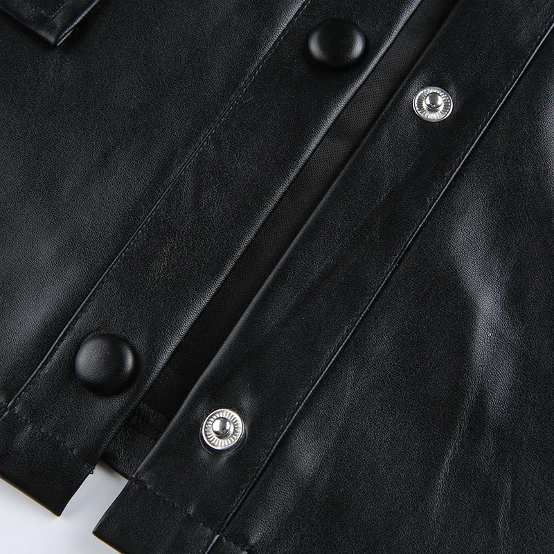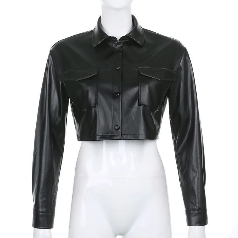Рубашка женская из экокожи, с отложным воротником и двумя карманами