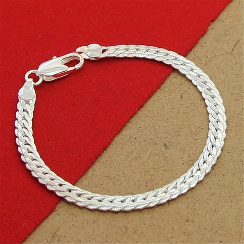 Женский и мужской браслет из серебра 925 пробы, 8 Дюймов, 5 мм