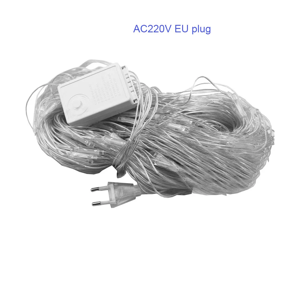 Цвет: теплый белый/Разноцветный/белый/синийМатериал: пластикДлина: 3*2 метраКоличество ламп: 192LEDСпособы работы: 8 режимовЯркость: нетВодонепроницаемость: класс IP44Посылка в комплекте: (вилка AC220V)1 х светодиодный светильник