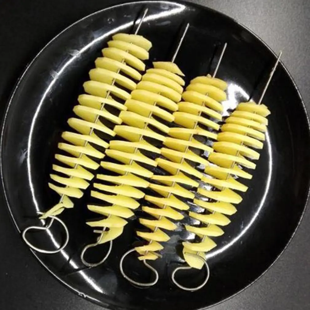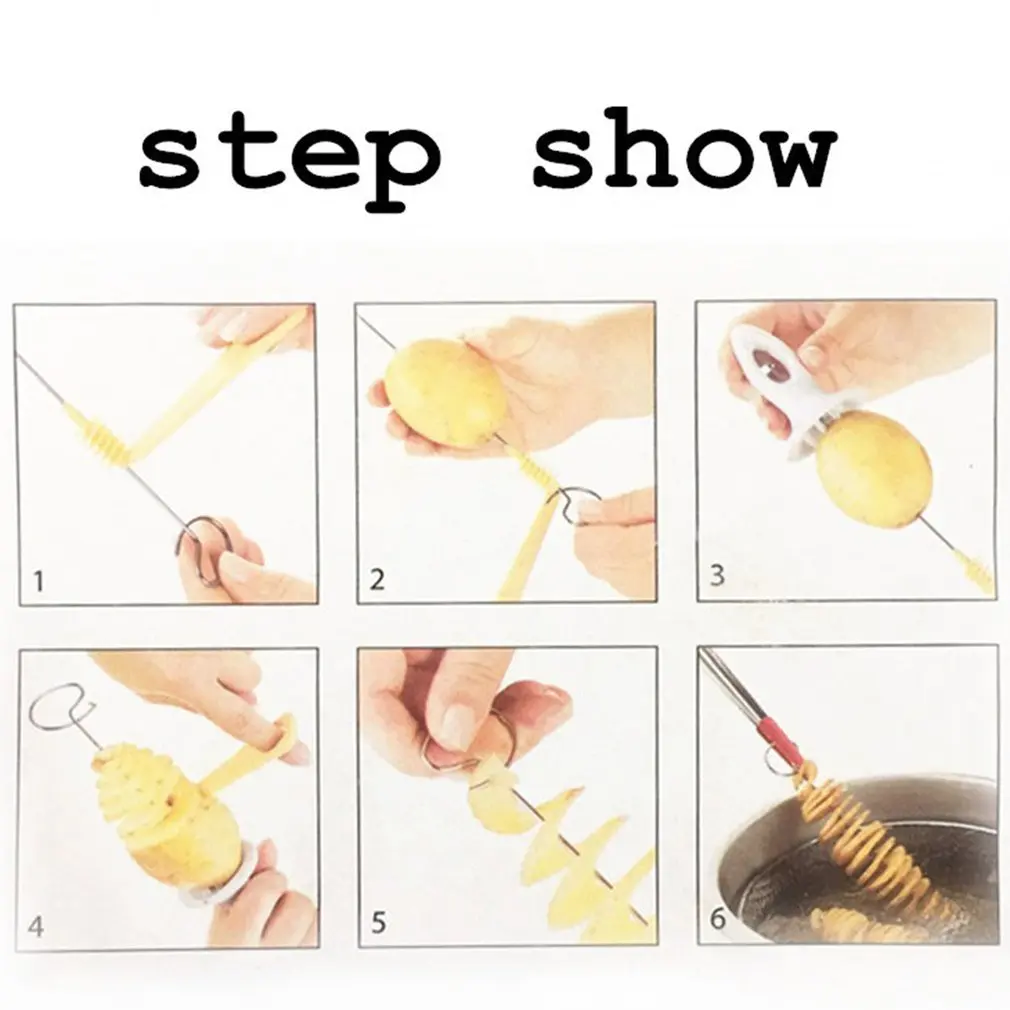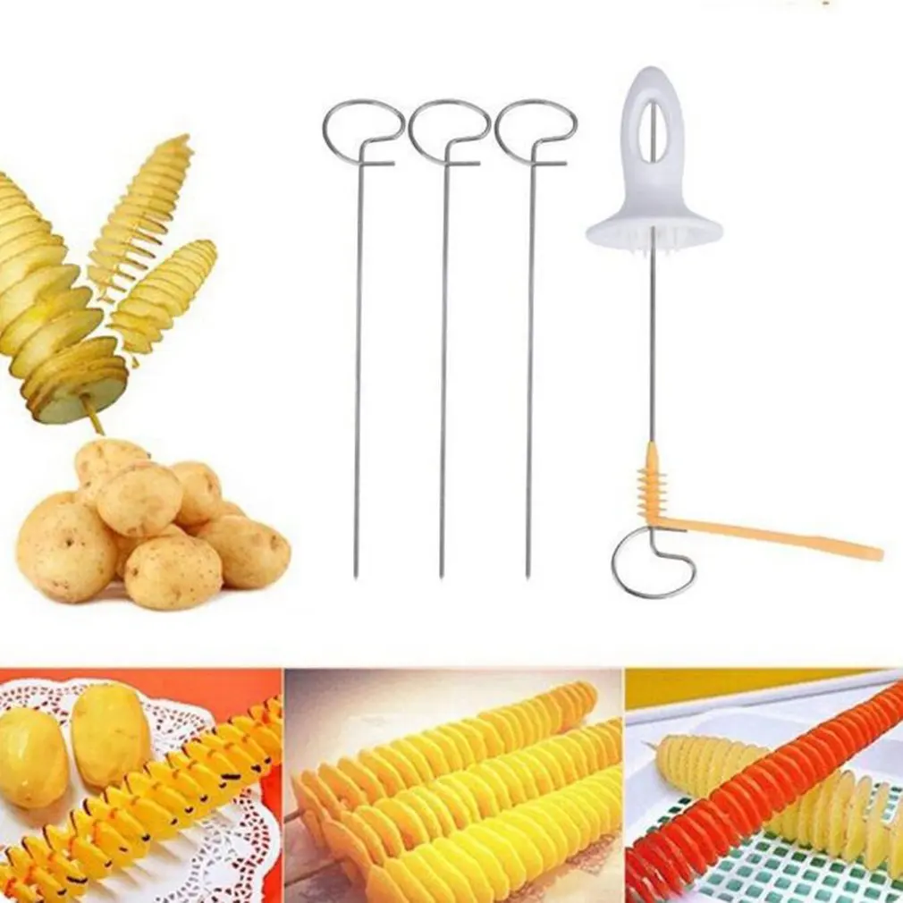 Ручной спиральный нож для картофеля, ручной слайсер, слайсер для жарки, овощей, спиральный измельчитель чипсов с 3 нержавеющими стальными палочками, кухонные приспособления