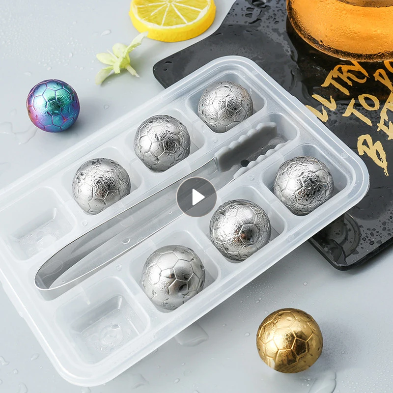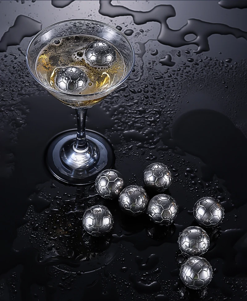 Кубики льда из нержавеющей стали в форме футбольного мяча, 8 шт.