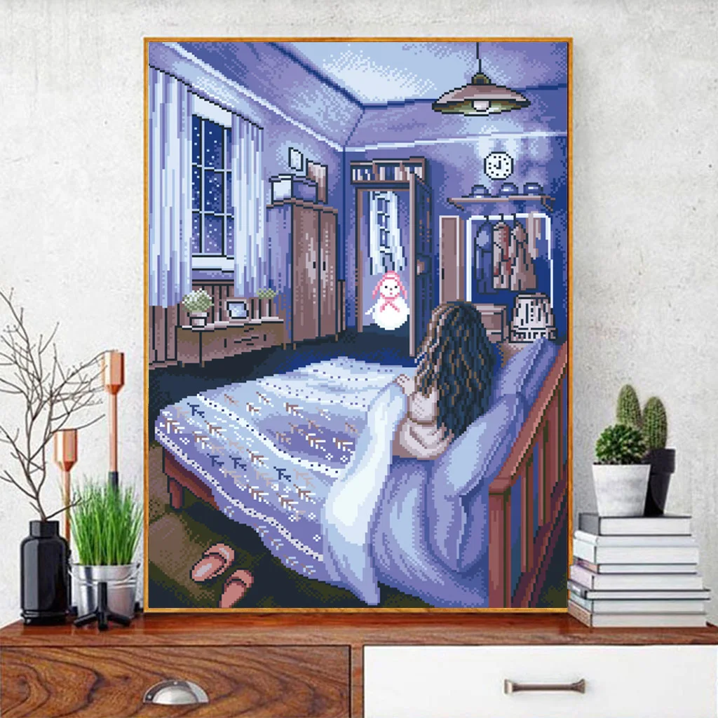 Набор для вышивки сделай сам, наборы для вышивки крестиком 11CT, 100% Точная печать DMC холщовых узоров, подсчитанный домашний декор для стен, подарок