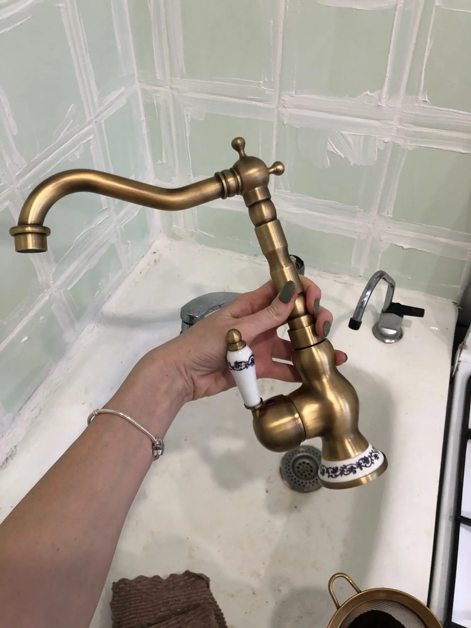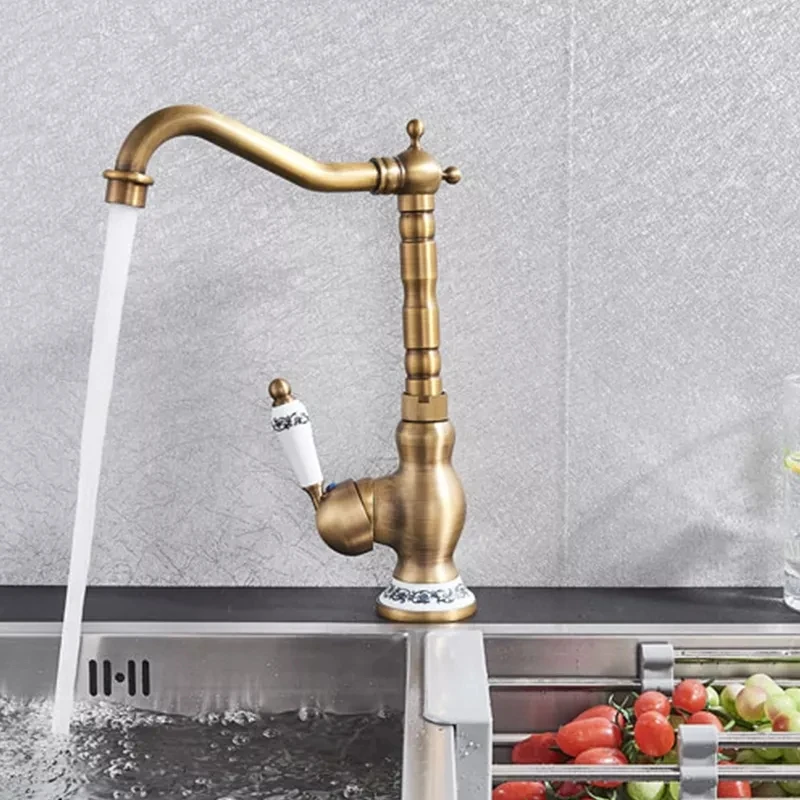 Смеситель для кухни, с одной ручкой, с поворотом на античный кран из латуни для умывальника градусов
