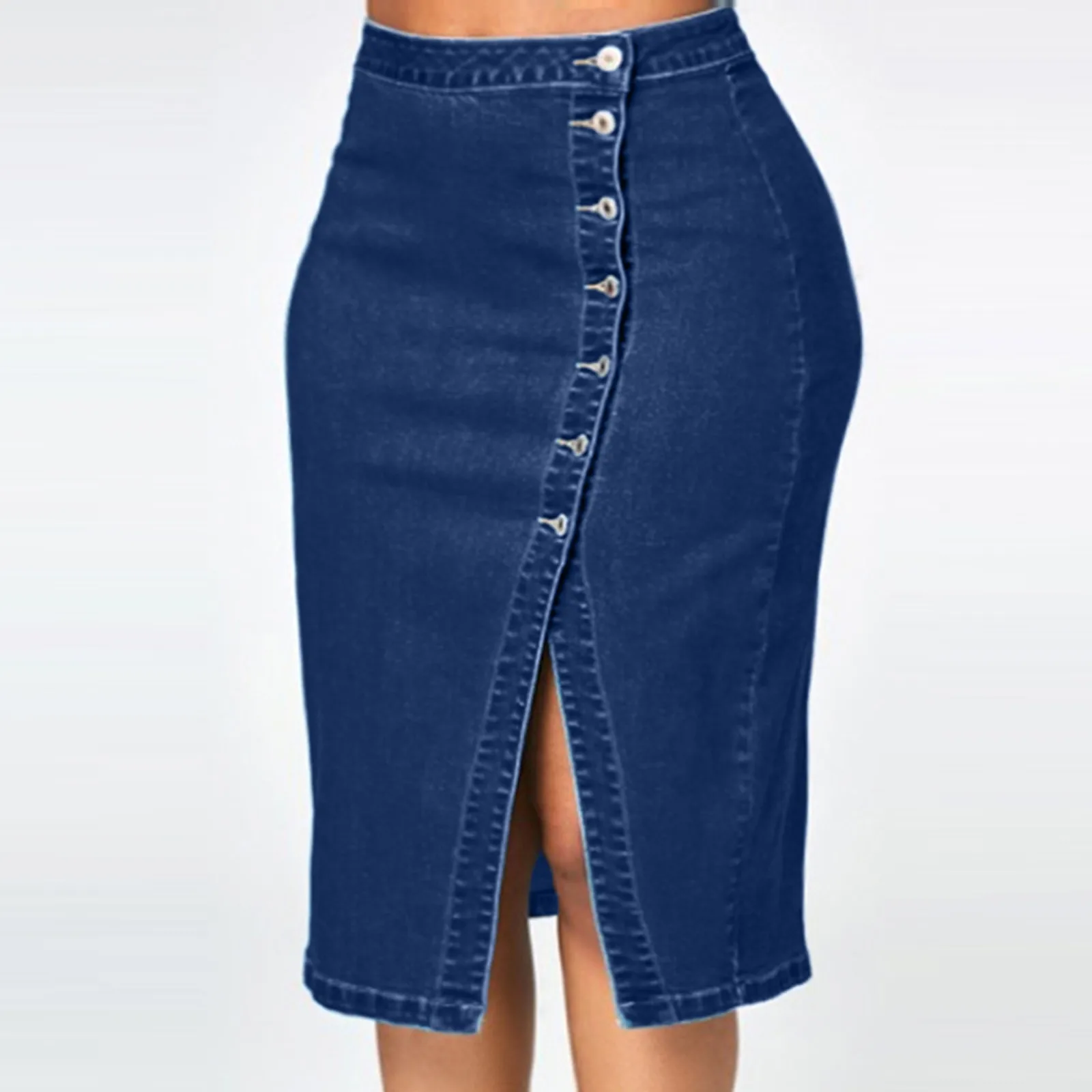 Женская модная повседневная сексуальная однобортная джинсовая юбка с высокой талией