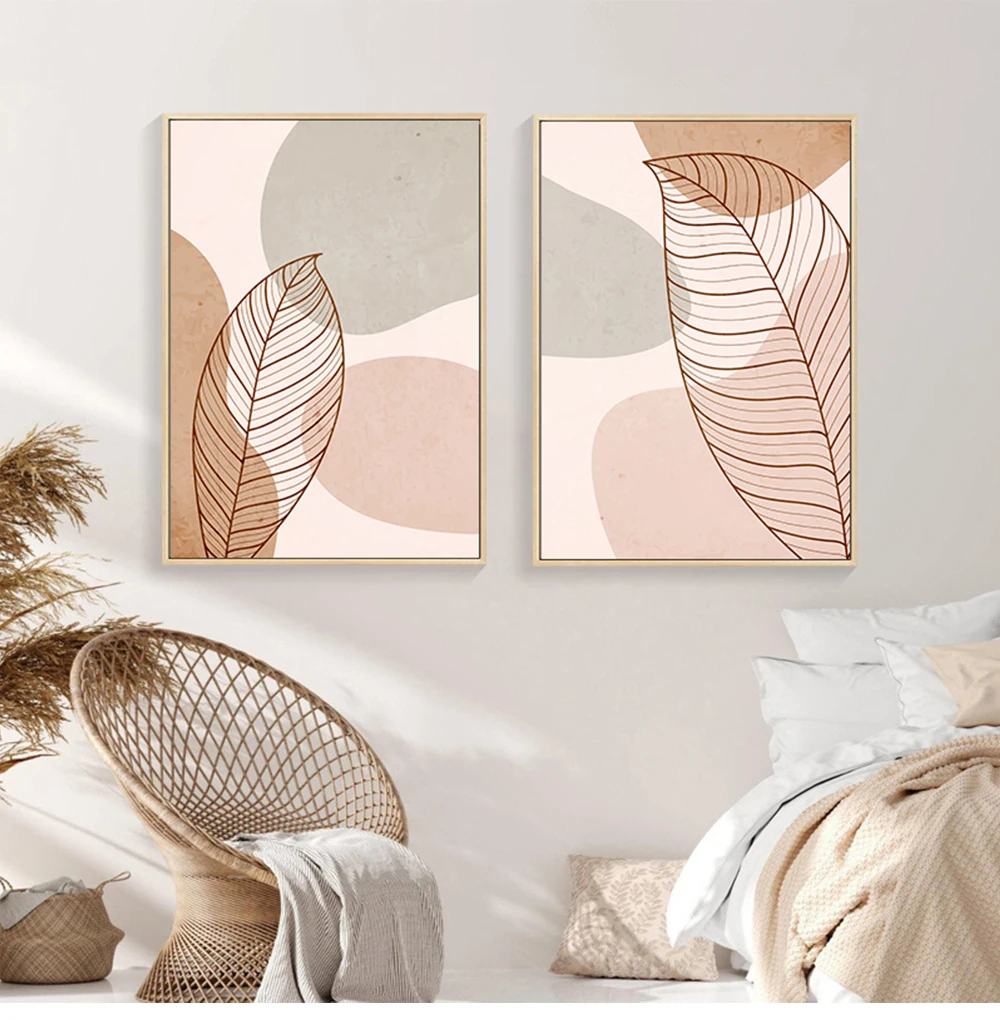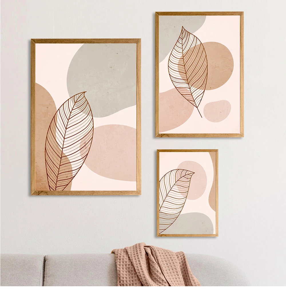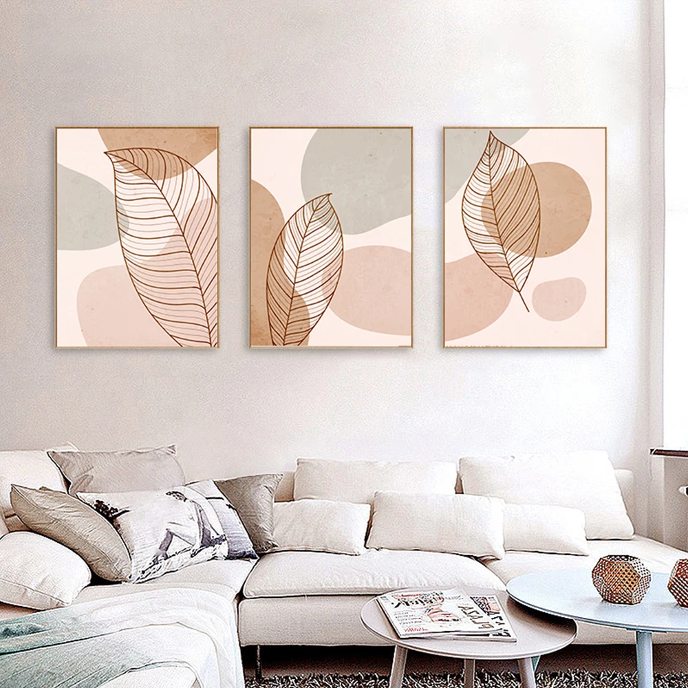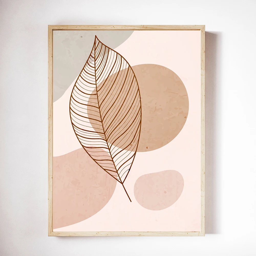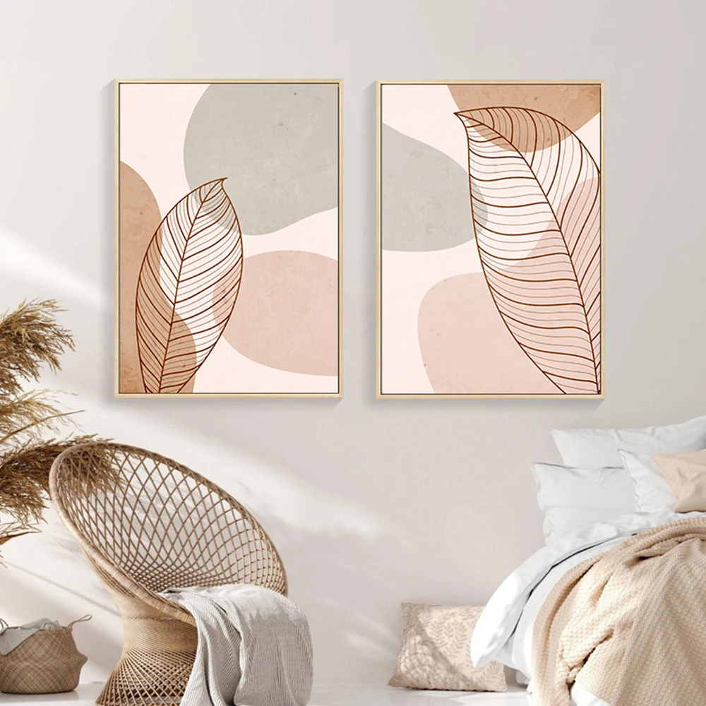 Бежевый постер в стиле бохо, абстрактные листья, холст, живопись, ж...