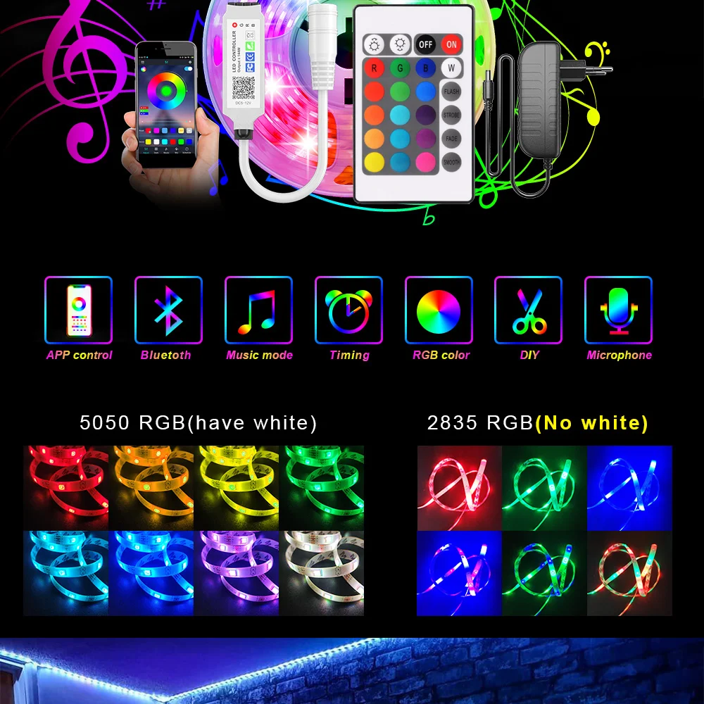 Светодиодная лента с Wi-Fi, светодиодная лампа RGB 5050 SMD 2835, г...