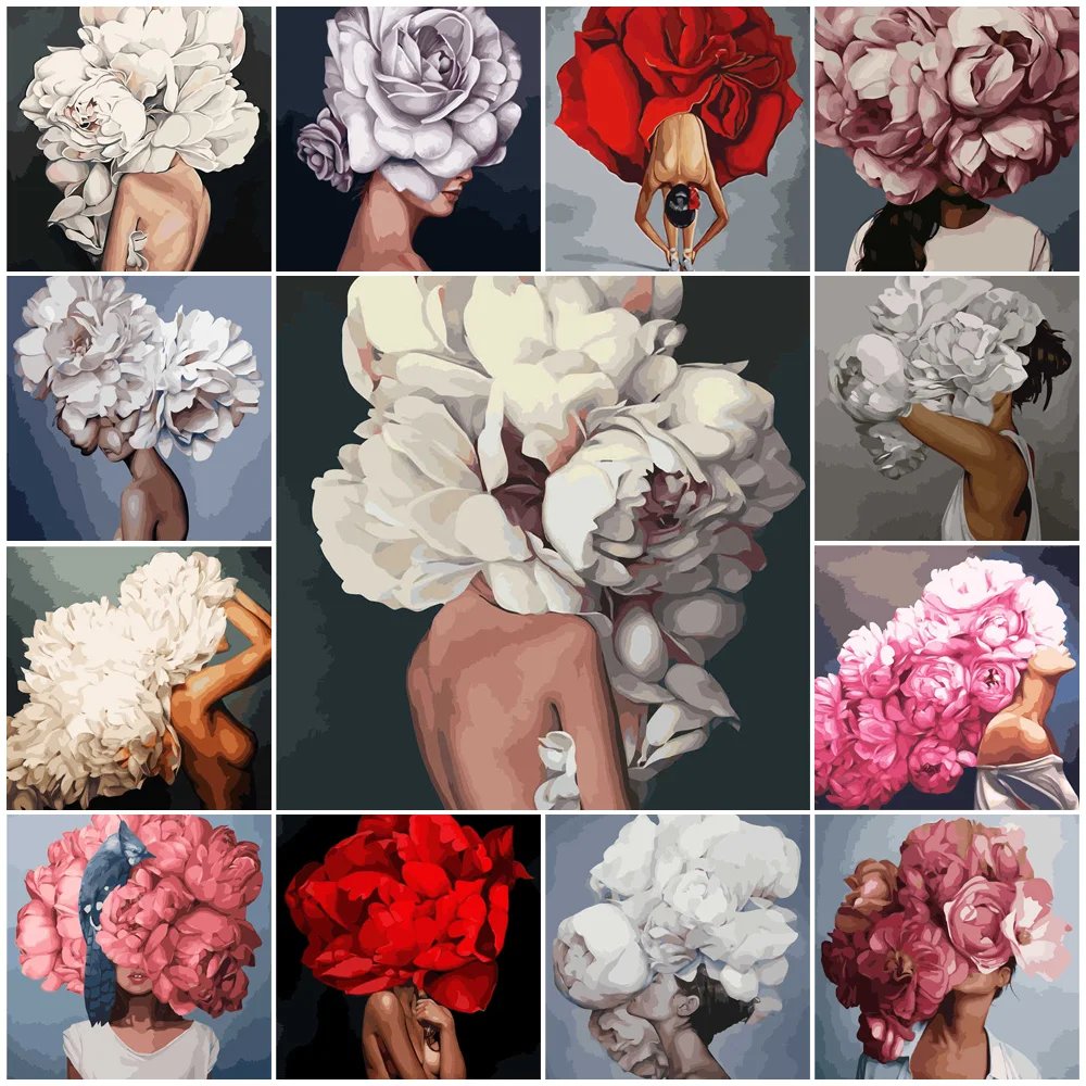цветы девушка картинки по номерам,красный цветы.красавица,рисование...