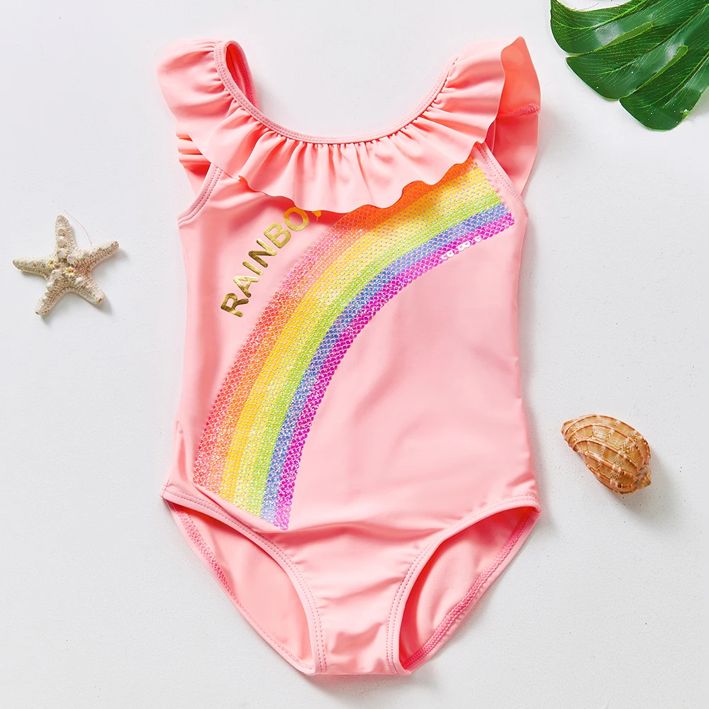Купальник для маленьких девочек от 3 до 16 лет, купальник для девочек с радужными блестками, Высококачественная детская пляжная одежда