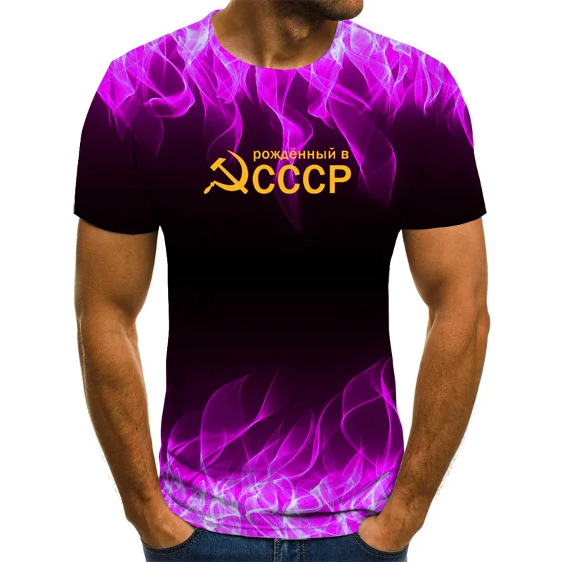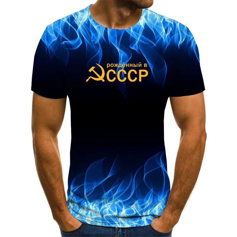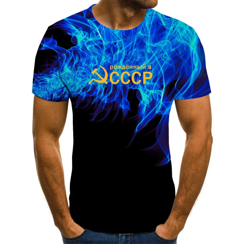 Футболка мужская с 3D-принтом, модная дышащая Повседневная рубашка с принтом пламени, советский СССР, с круглым вырезом и коротким рукавом