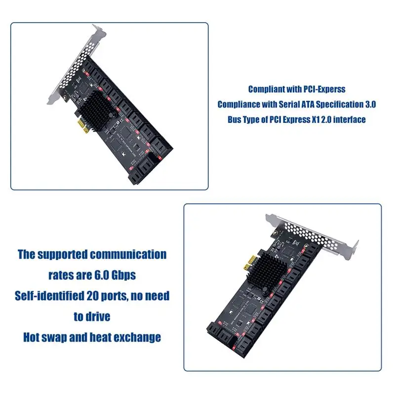 Плата расширения контроллера SATA PCI-E X1-SATA 3,0, 20 портов