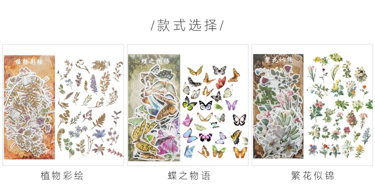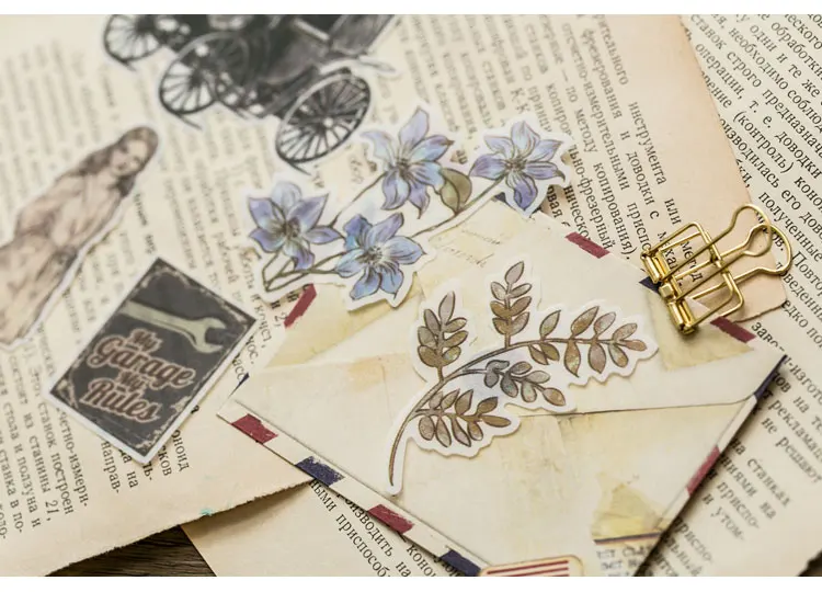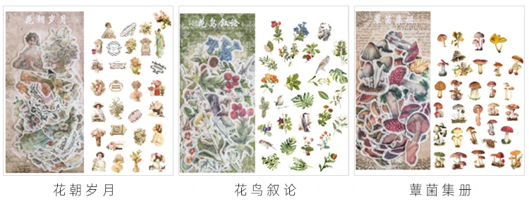 60 шт.пакет Ретро цветок гриб бабочка дневник декоративные наклейки...