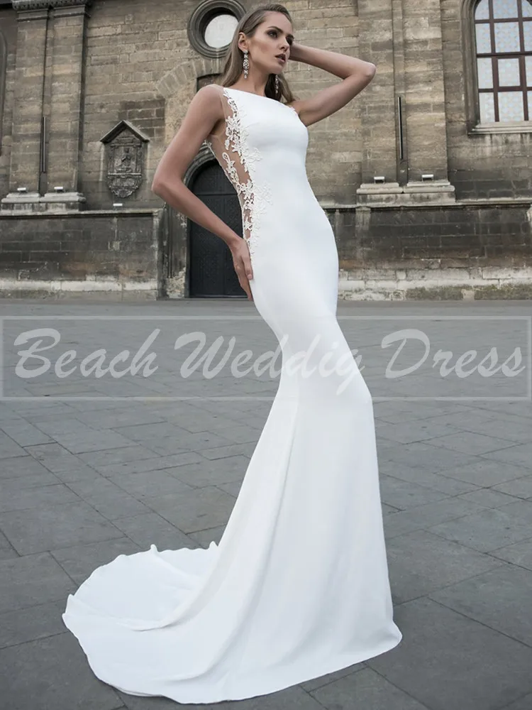Женское свадебное платье с юбкой годе, элегантное кружевное платье без рукавов, с открытой спиной и вырезом лодочкой, с аппликацией, 2021