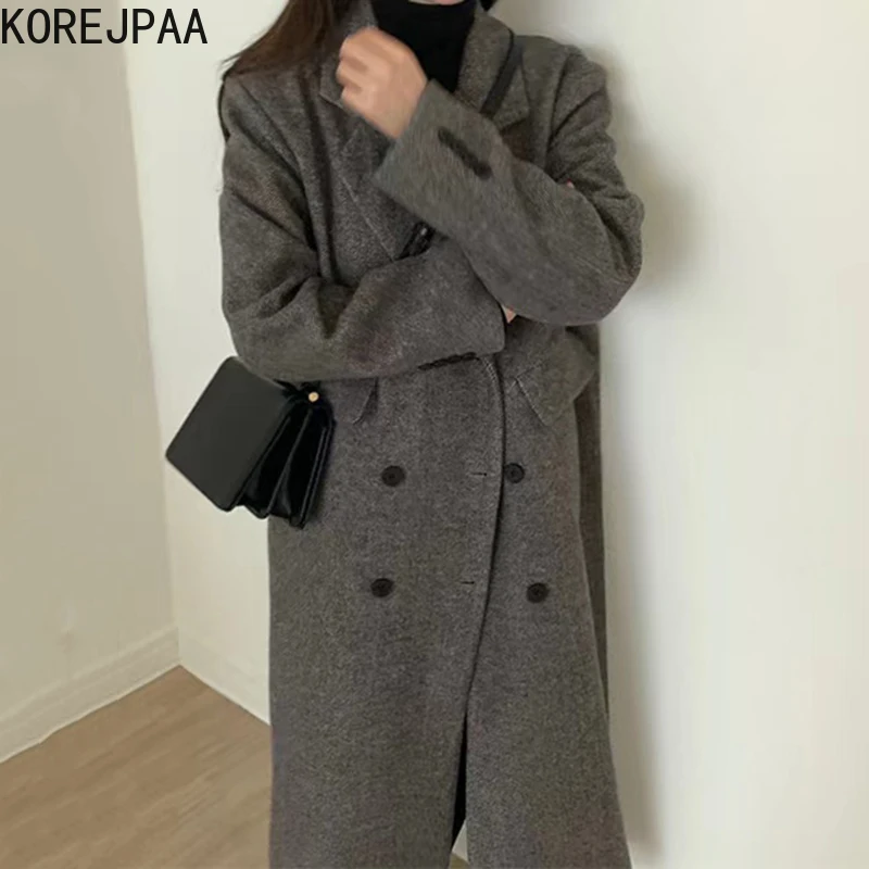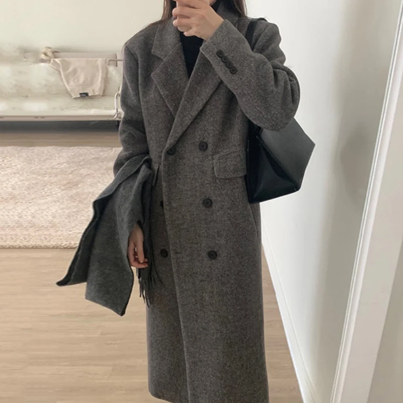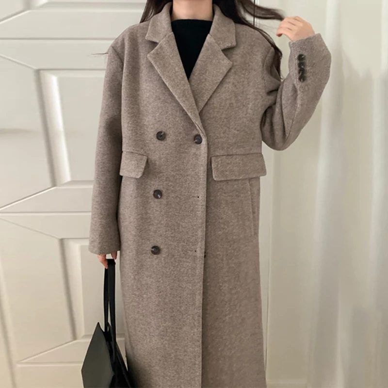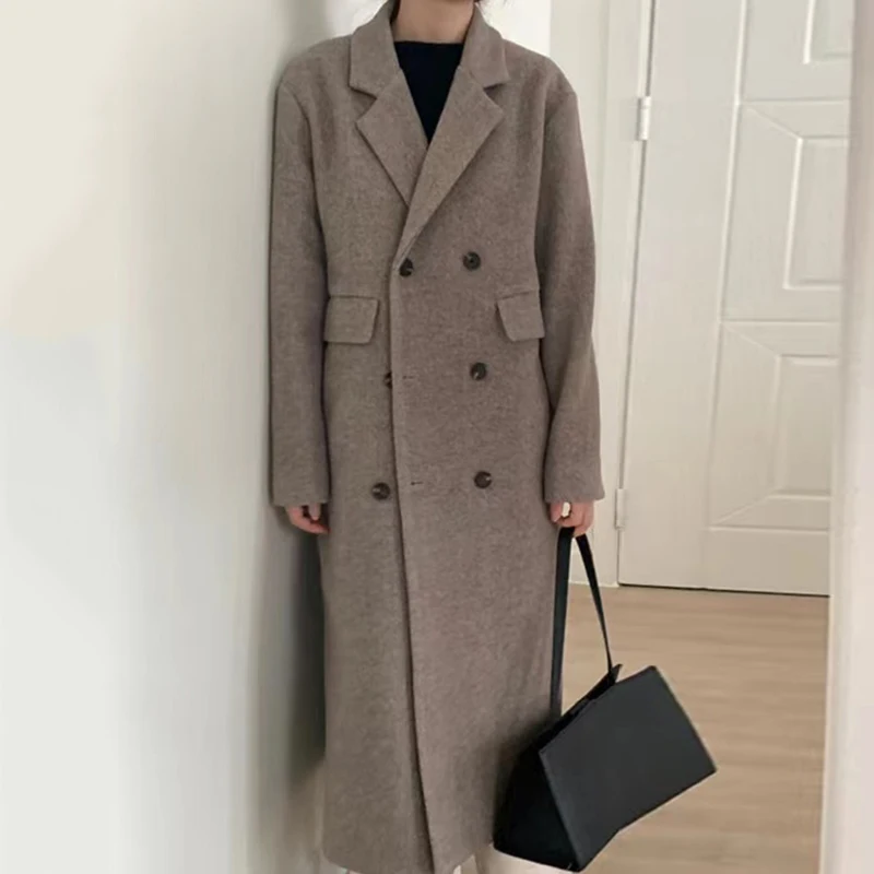 Куртка Шерстяная Женская, двубортная, с воротником и длинным рукавом, осень 2021