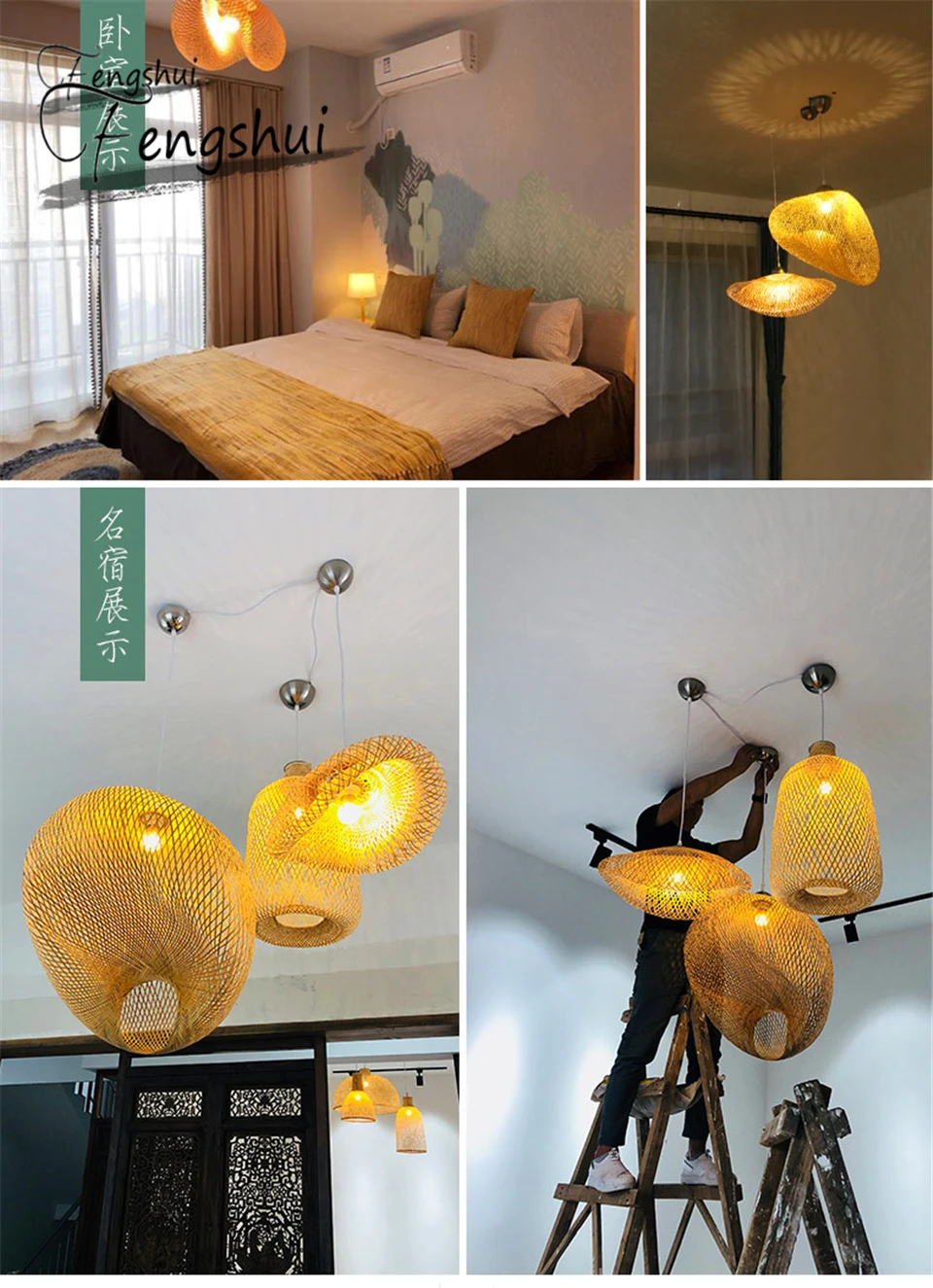 Бамбуковый подвесной светильник для гостиной в китайском стиле, подвесной светильник, искусство на кухне, домашний декор, светильник