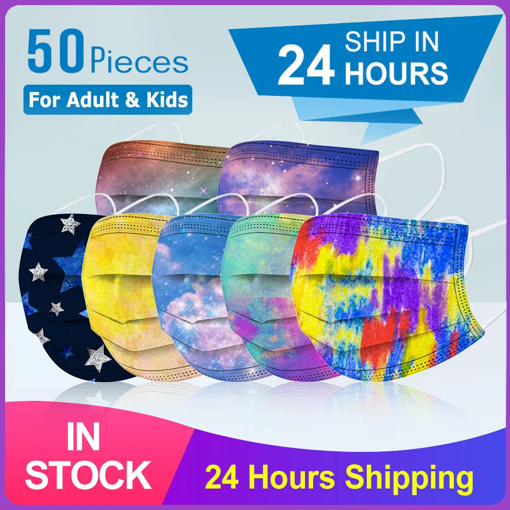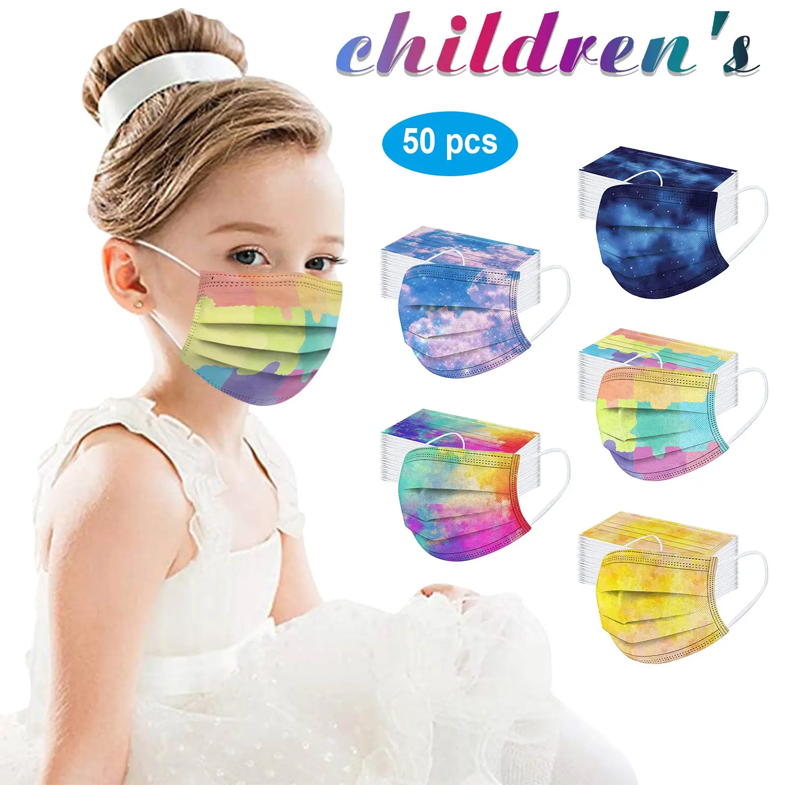 Одноразовая цветная мультяшная детская маска, защитная маска для рта и лица, 3-слойная дышащая детская маска для лица с фильтром и заушными петлями