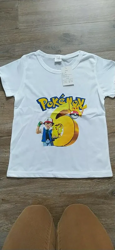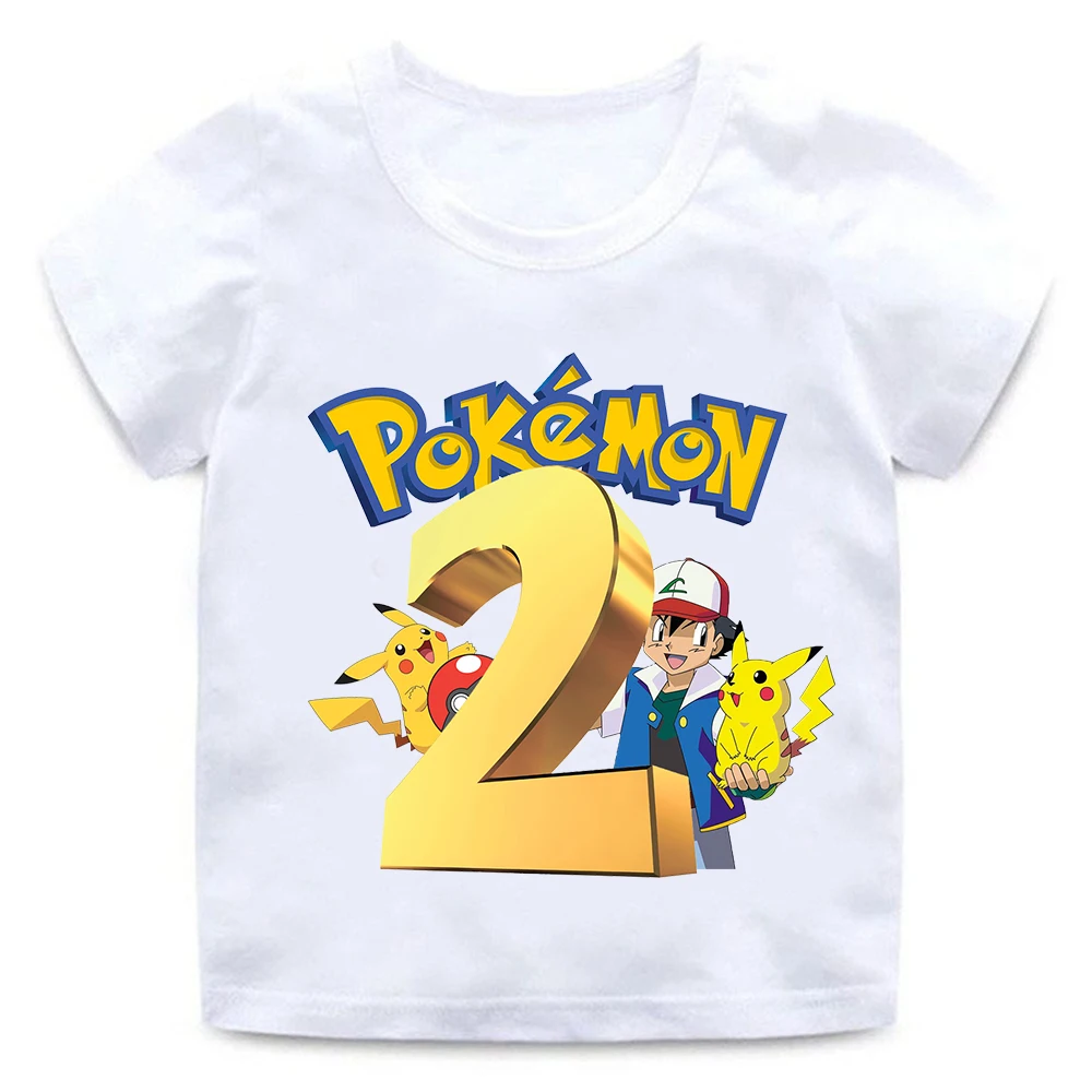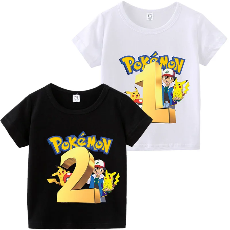 Детская Хлопковая футболка с принтом Покемон Пикачу, Детская футболка с номером, одежда для детей на день рождения с пепелью и кетчумом, детские топы для мальчиков и девочек