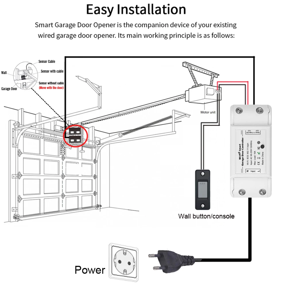 Смарт-Открыватель двери гаража Tuya, управление, wi-fi переключатель, дистанционное управление через приложение, таймер, работает с голосовыми командами Alexa Google Home