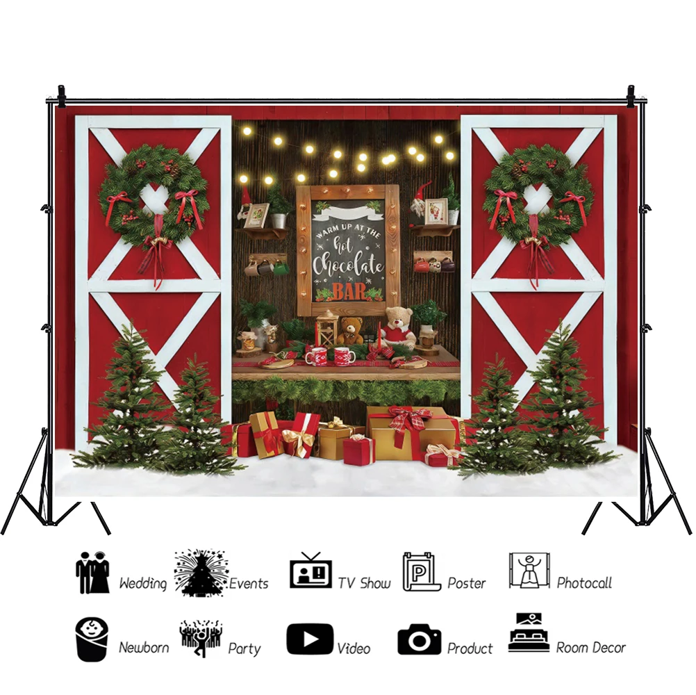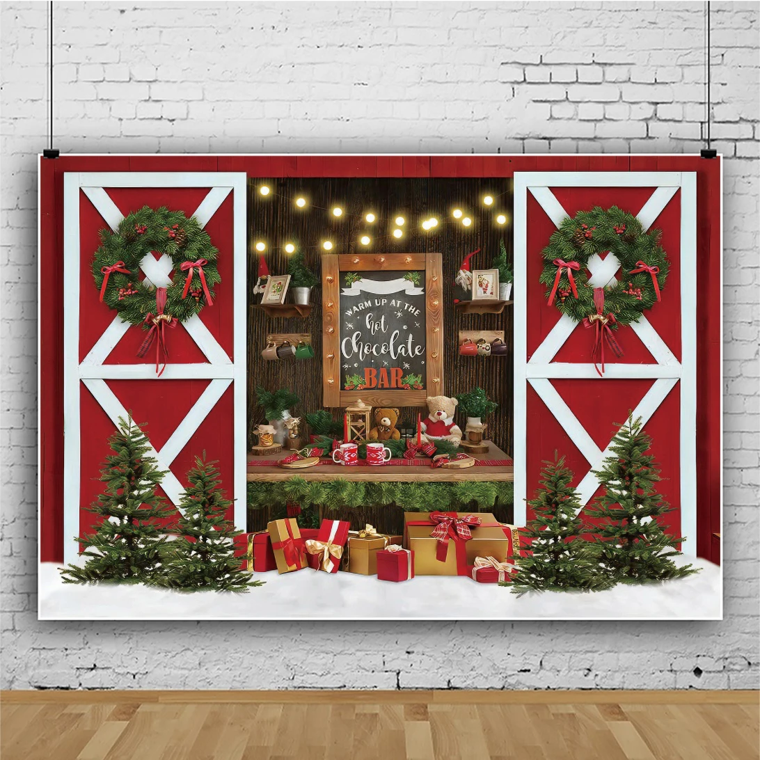 Рождественские фоны для фотосъемки сосновые деревья подарки Бар Медведь Вечерние Ребенок семья фотозона фото фон для фотосъемки