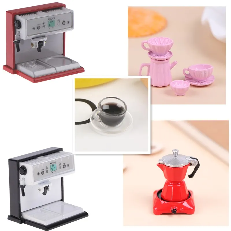 Масштаб 112 миниатюрная кухонная металлическая кофемашина для кукольного домика ролевая игра игрушка для приготовления пищи аксессуары