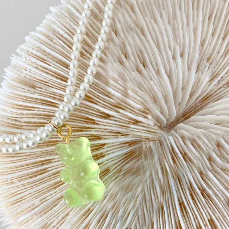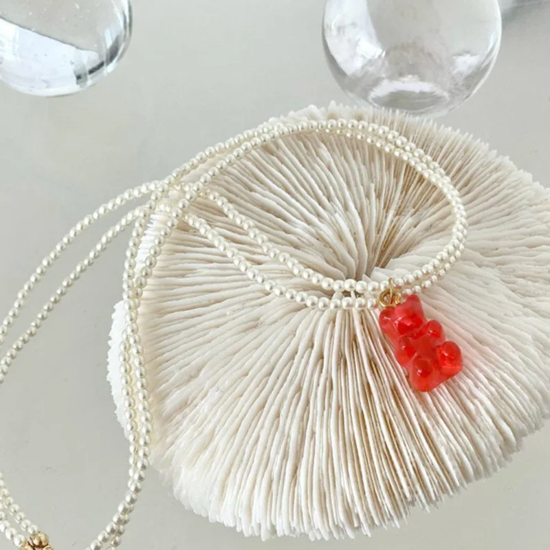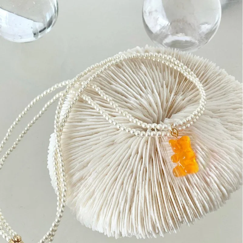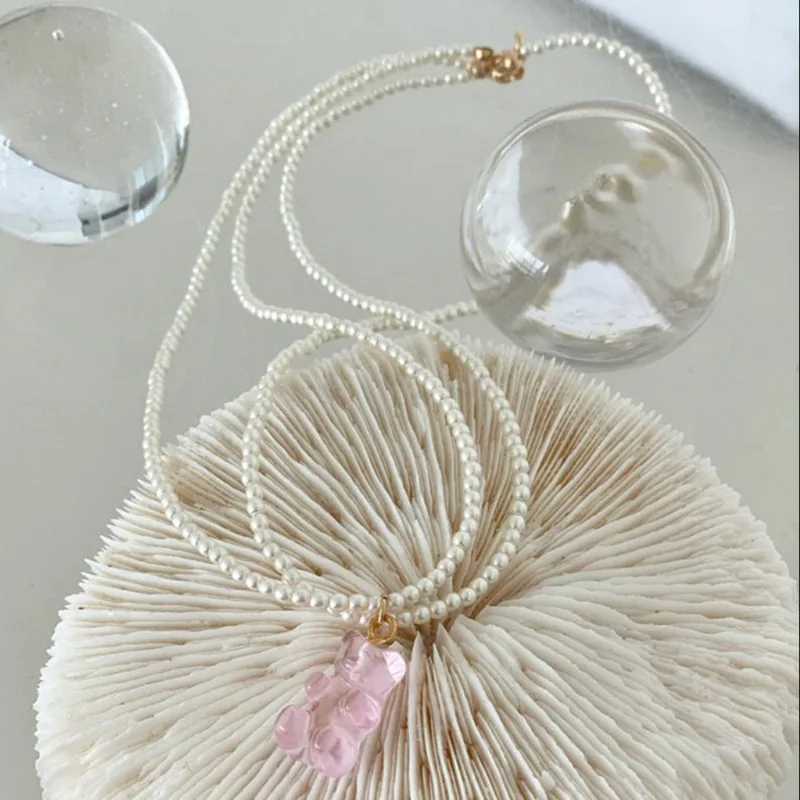 Ожерелье в виде медведя из смолы с искусственным жемчугом