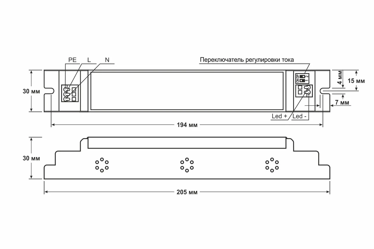 - Гальваническая развязка- Защита от короткого замыкания/перенапряжения/перегрева- Охлаждение естественной конвекцией- Встроенный активный корректор коэффициента мощности- Подходит для сухих мест- Выходной постоянный уровень тока можно регулировать за счет внутреннего потенциометра.