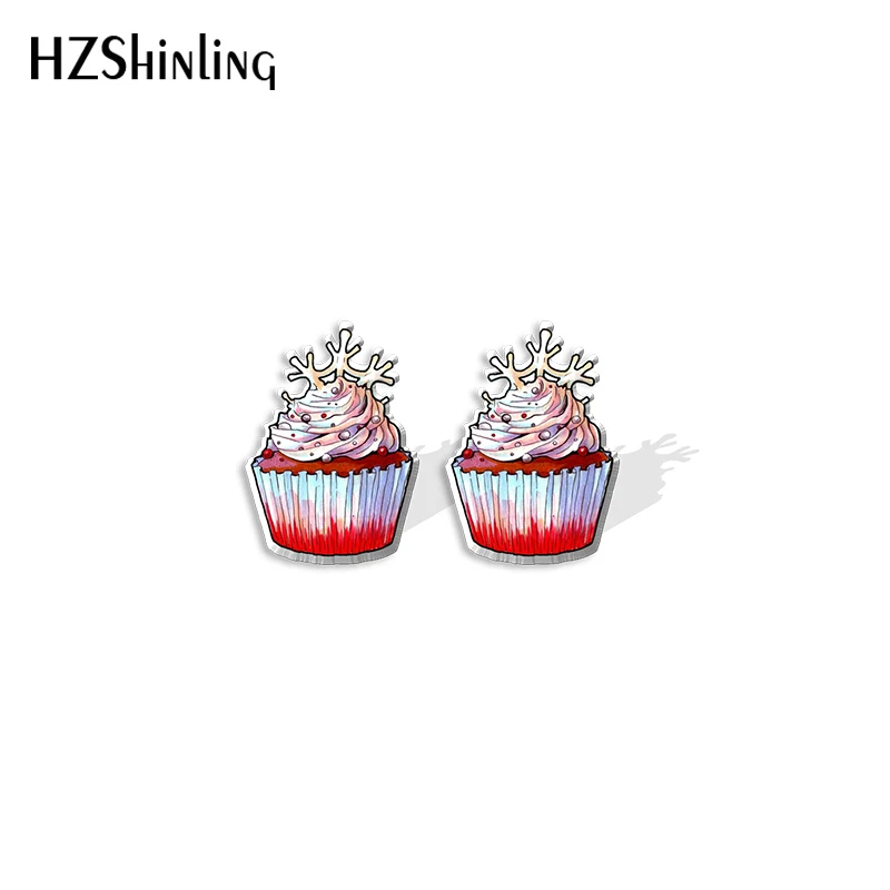 Акриловые серьги-гвоздики с изображением милых десертов, молочных к...