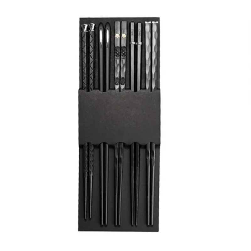 Китайские японские палочки для еды, 5 пар, многоразовые металлические корейские палочки для еды, набор палочек из сплава нержавеющей стали для суши