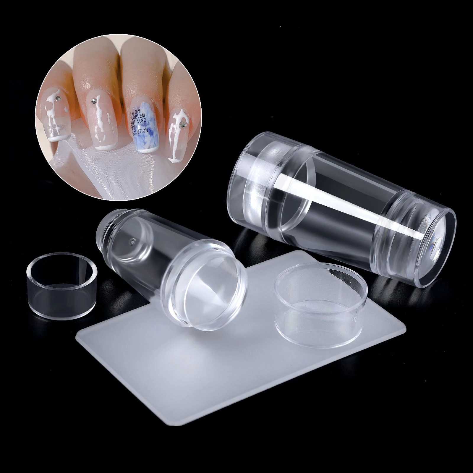 Прозрачные силиконовые набор для стемпинга ногтей со скребком, двой...