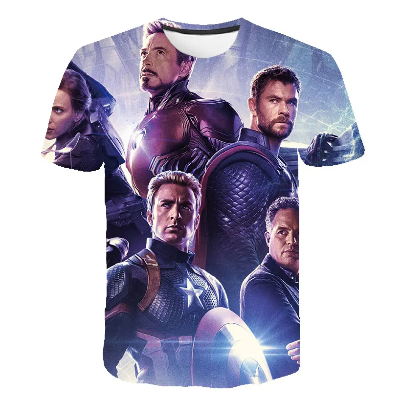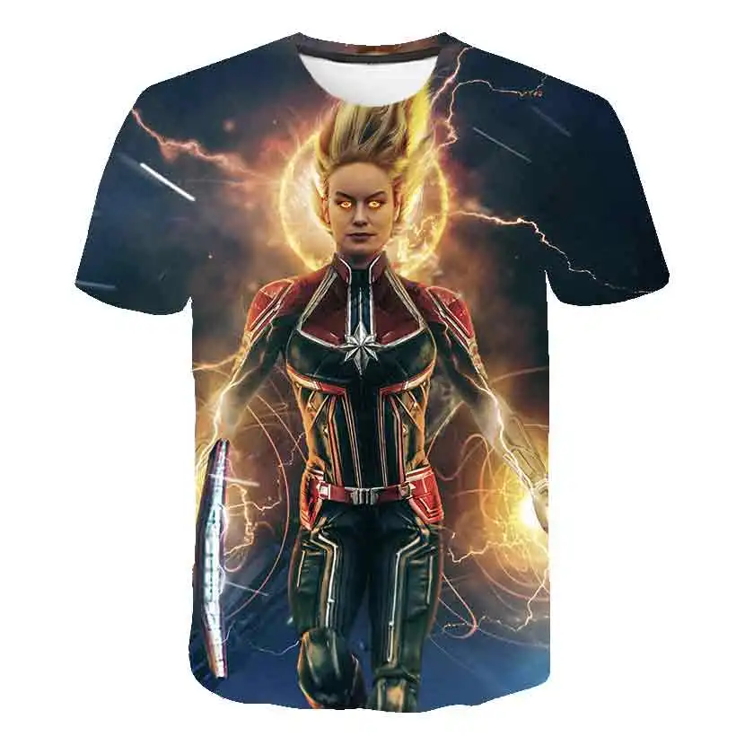 Футболки с супер-героями для мальчиков и девочек, летняя детская фу...