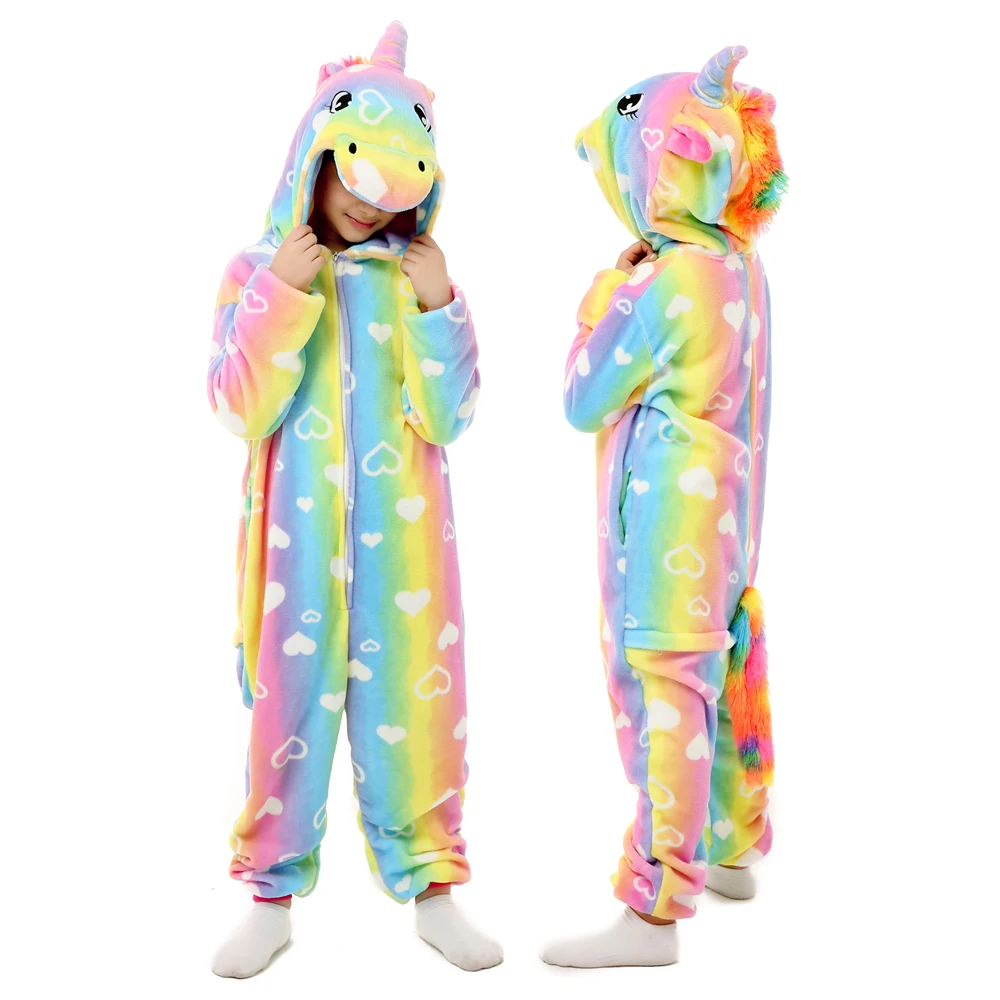 Милая Радужная пижама в виде единорога, Кигуруми для девочек и маль...