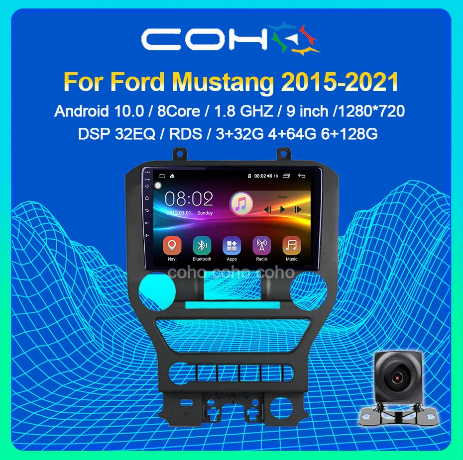 COHO для Ford Mustang Octa-Core 2015-2021 Android автомобильное радио, мультимедийный видеоплеер, навигация GPS 6 + 128 Blu-Ray